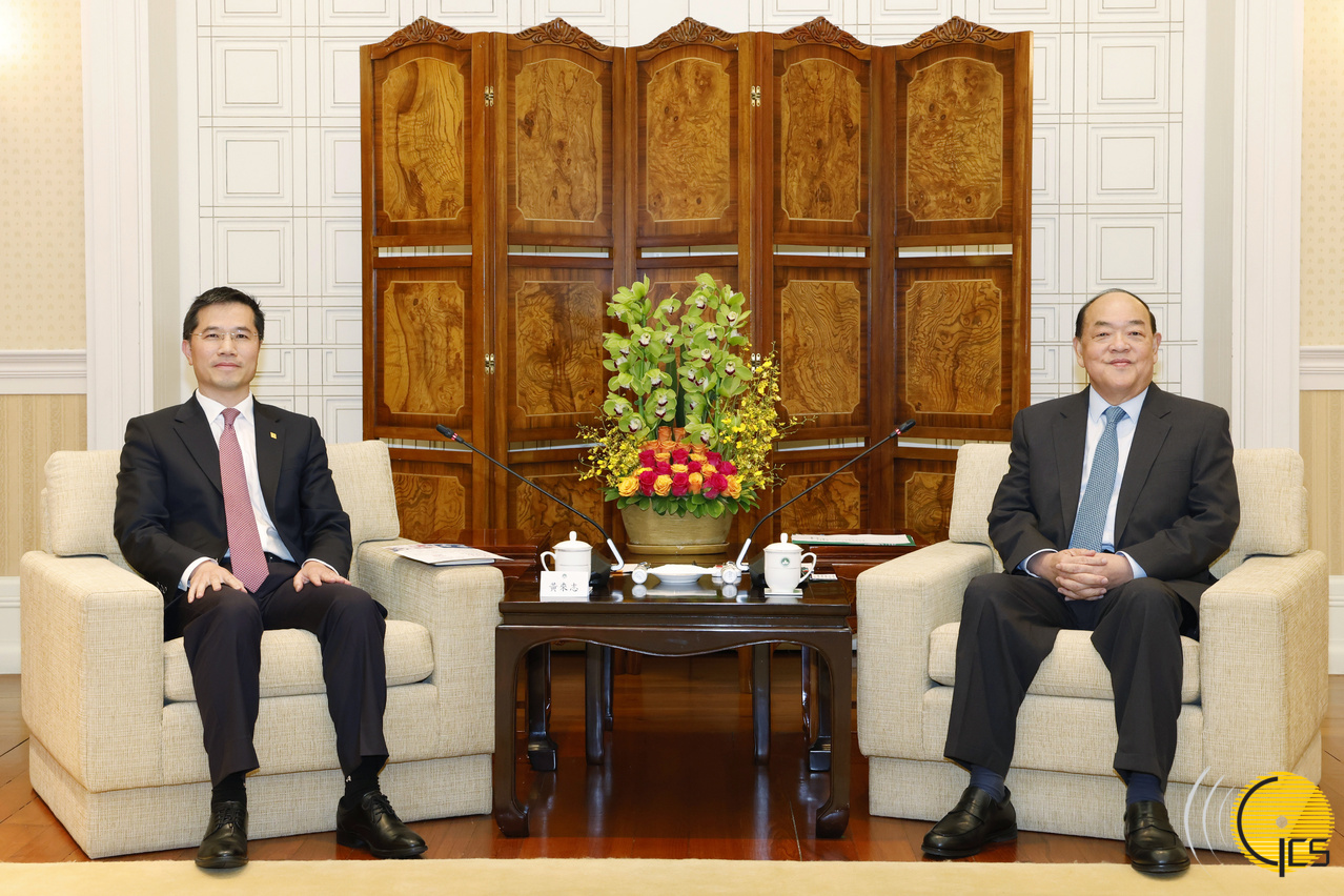 Chefe do Executivo, Ho Iat Seng, recebe, em audência, o presidente do Conselho de Administração do Banco Luso Internacional, Huang Laizhi, na Sede do Governo.