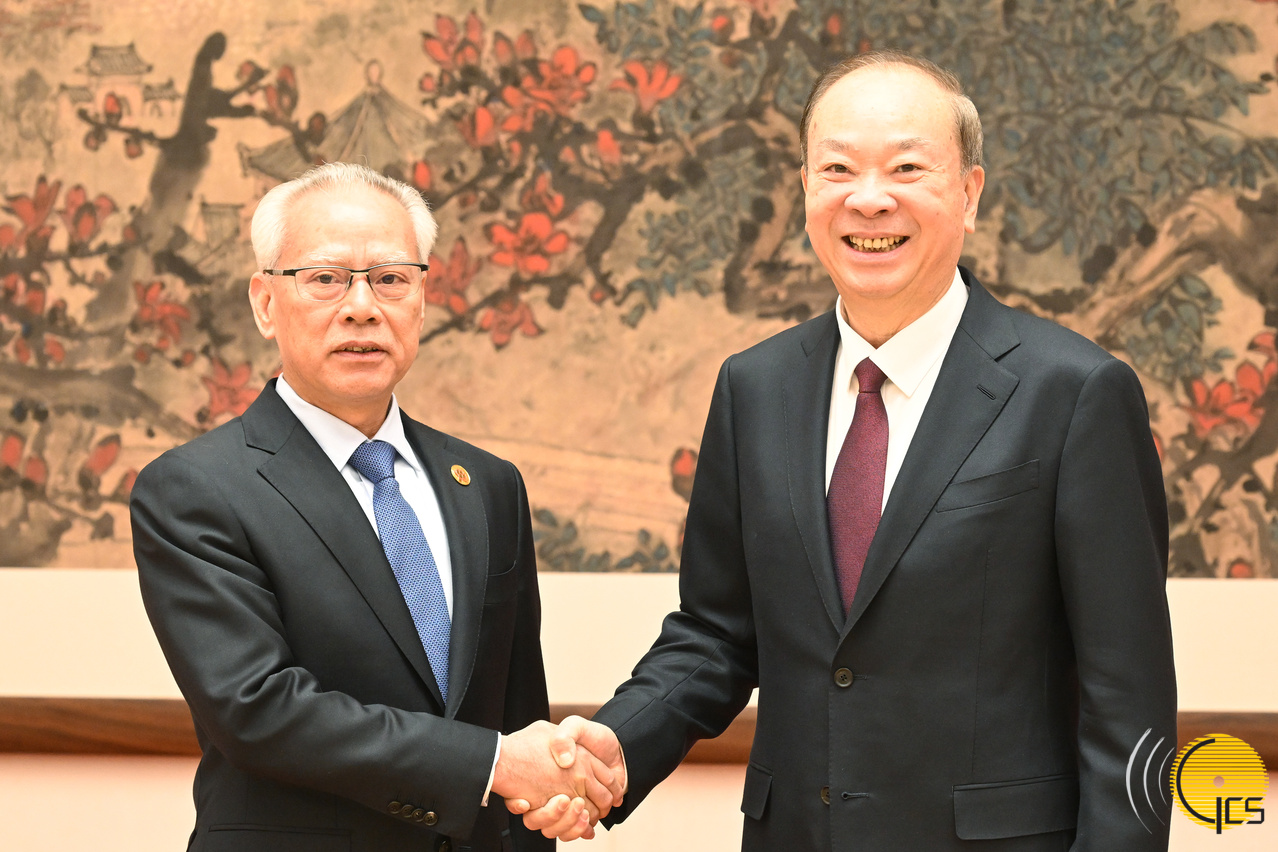 • Chefe do Executivo, Sam Hou Fai, cumprimenta o secretário do comité provincial de Guangdong do Partido Comunista Chinês (PCC), Huang Kunming, em Cantão.
