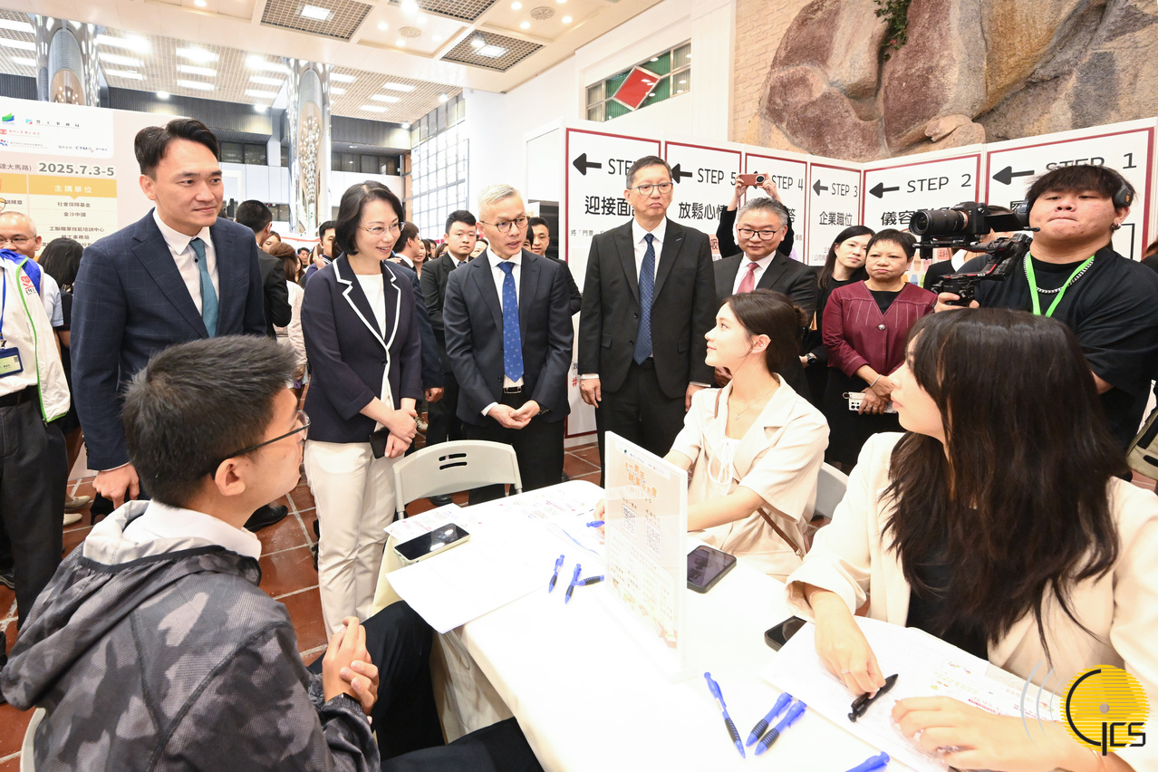 • Secretário para a Economia e Finanças, Tai Kin Ip e a Secretária para os Assuntos Sociais e Cultura, O Lam, e os convidados principais presidem a cerimonia de inauguração da "Feira de Emprego para Jovens de Macau" e da "Feira de Orientação Profissional para Jovens de Macau".