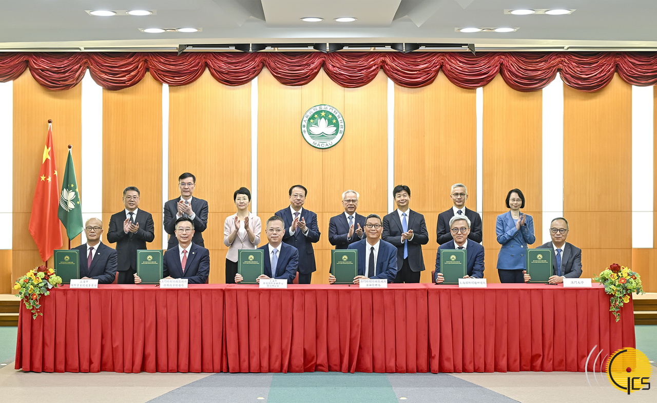 • Chefe do Executivo, Sam Hou Fai, o presidente do município de Xangai, Gong Zheng, o vice-director do Gabinete para os Assuntos de Hong Kong e Macau do Conselho de Estado, Lu Yuyin, e demais convidados testemunham a assinatura de vários protocolos de cooperação pelos representantes das duas partes.