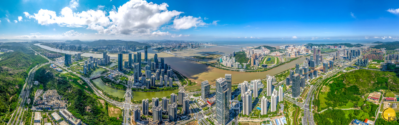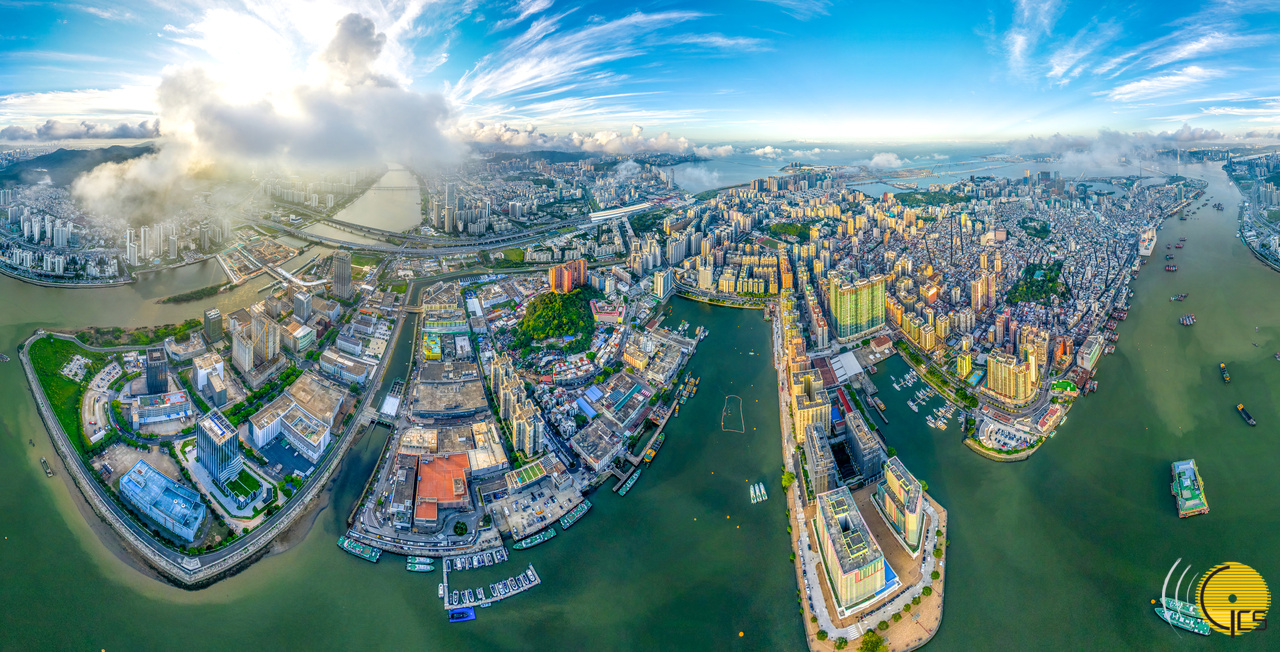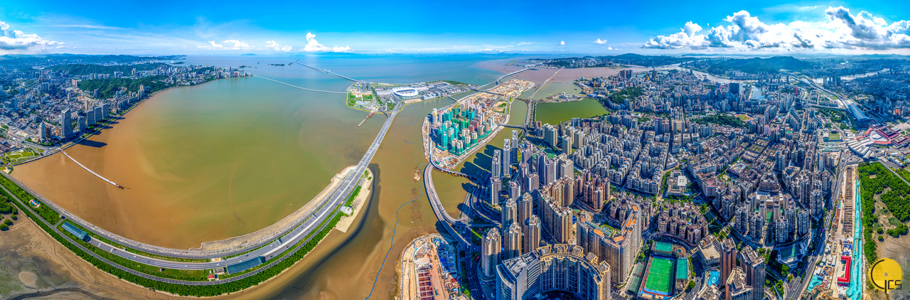 • Macau empenha-se em promover a construção da Zona de Cooperação Aprofundada entre Guangdong e Macau em Hengqin. A integração entre os dois locais está acelerada, parecendo fundir-se num só local a partir de uma vista panorâmica aérea.