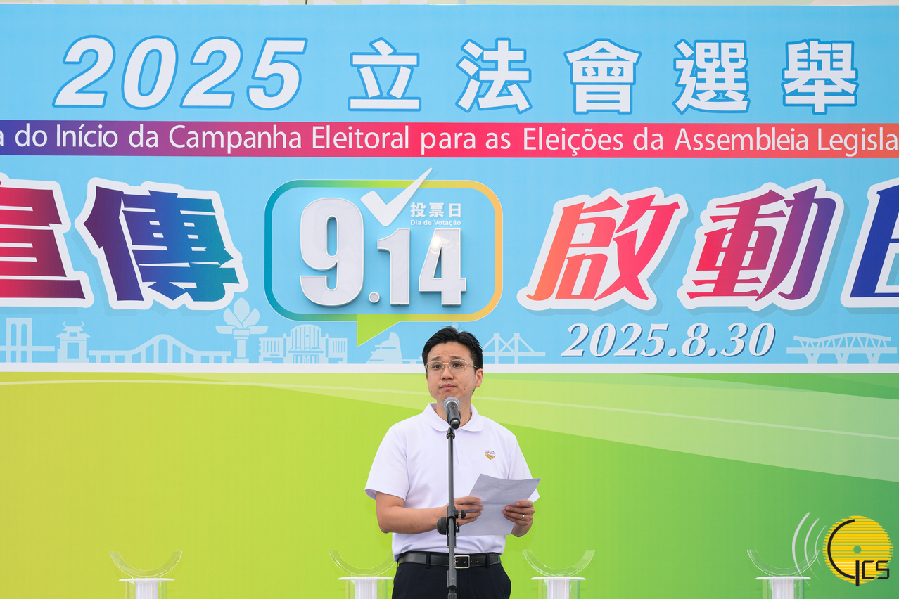 • Presidente da Comissão de Assuntos Eleitorais da Assembleia Legislativa, Seng Ioi Man discursa no evento.