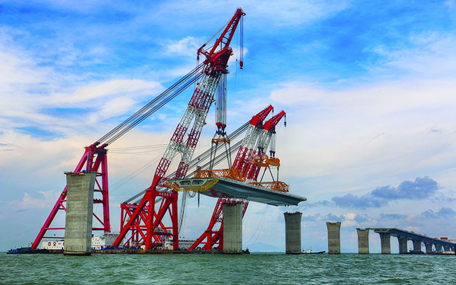 Com uma magnitude nunca antes vista, a Ponte Hong Kong-Zhuhai-Macau suscitou desafios à escala, a começar pela inevitabilidade de diligenciar soluções tecnológicas que pudessem tornar a obra possível. “Esta grua tem capacidade para levantar 12.000 toneladas. É algo absolutamente fantástico. E, se tal não bastasse, a Zhenhua 30 está assente numa plataforma giratória de 360 graus”, ilustra Chan Mun Fong. “Para um projecto destes, era absolutamente necessário ter uma grua desta envergadura, porque as equipas que construíram a ponte não podiam estar a trabalhar com material que puxasse o esforço até ao limite para levantar os segmentos do tabuleiro. De outro modo, corriam o risco de a grua balançar e de colocar em risco a própria viabilidade do projecto”, explica o director executivo da Civil Engineering Consultants Co. Limited.