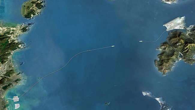 Terça-feira, 2 de Maio de 2017. No coração do extenso estuário que aparta Macau e Hong Kong, uma estrutura incomum labora com indissimulável precisão. Instalado num cargueiro com dimensões também elas descomunais, o colossal aparato conduz uma missão que engenheiros e especialistas definem como crítica: a deposição do derradeiro segmento do longo túnel subaquático que integra o projecto da Ponte Hong Kong-Zhuhai-Macau.
