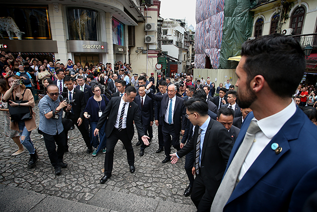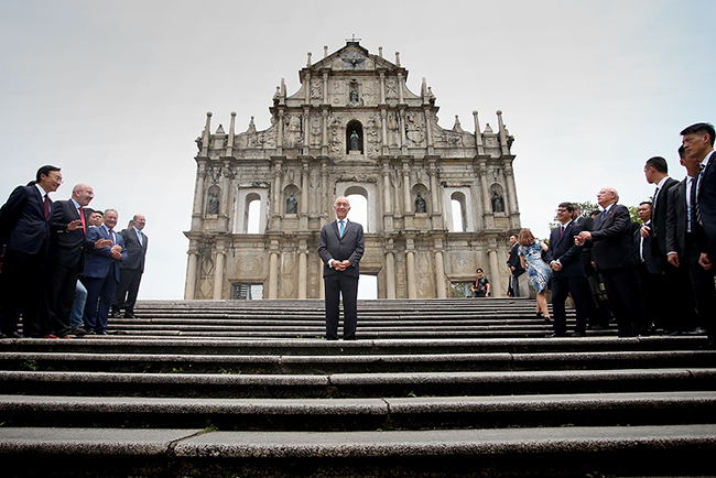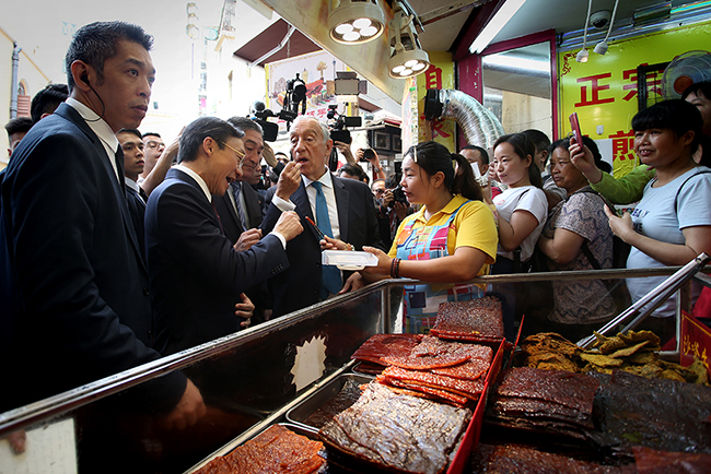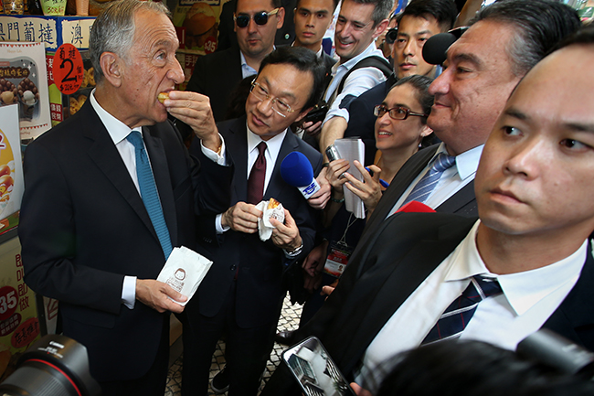Na visita foi acompanhado pelo secretário para os Assuntos Sociais e Cultura da RAEM, Alexis Tam. O Presidente português aproveitou para sublinhar a singularidade de Macau, muito devido à influência portuguesa na região.