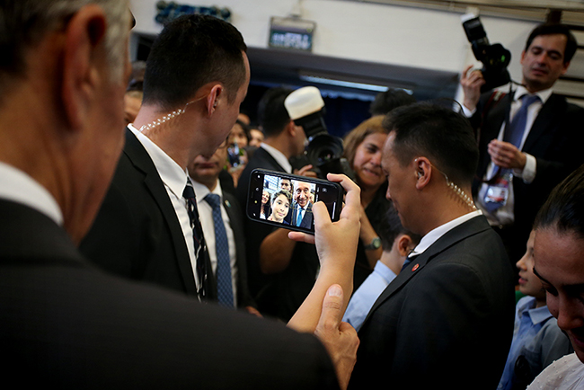Reuniu-se com o primeiro-ministro, Li Keqiang, na residência oficial Diaoyutai, após a deposição de uma coroa de flores no Monumento aos Heróis do Povo, na Praça Tiananmen, e foi depois recebido pelo Presidente Xi Jinping, no Grande Palácio do Povo, numa cerimónia com honras militares.