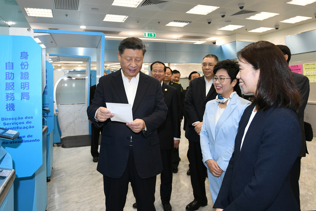 Ao início da manhã do dia 19 de Dezembro, e acompanhado pelo então Chefe do Executivo Chui Sai On, o Presidente Xi Jinping visitou o Centro de Serviços da RAEM na zona da Areia Preta, onde se inteirou das várias áreas de serviços prestados, e teve ainda oportunidade de conversar com residentes e funcionários públicos. Durante a visita, o Presidente começou por ouvir a apresentação da secretária para a Administração e Justiça, Sónia Chan, sobre os serviços disponíveis, dirigindo-se de seguida à área de serviços da Direcção dos Serviços de Identificação para conhecer o funcionamento das máquinas de auto-atendimento, ouviu a apresentação sobre as versões antiga e nova do bilhete de identidade e do passaporte, bem como a sua utilidade, e conversou com residentes que estavam à espera de serem atendidos. Xi Jinping visitou ainda a área de serviços do Fundo de Segurança Social, onde lhe foi explicado o regime de pensões para idosos, e conversou com os residentes que estavam a tratar de formalidades relacionadas com as pensões.