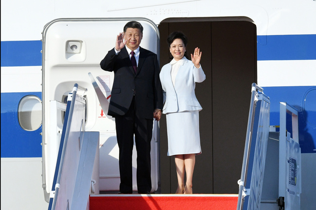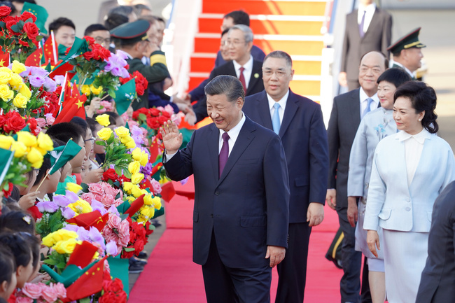 1_Presidente Xi Jinping recebido calorosamente no Aeroporto Internacional de Macau.