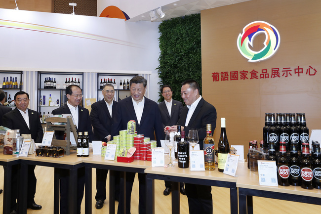 Presidente Xi Jinping visita o Centro de Exposição dos Produtos Alimentares dos Países de Língua Portuguesa