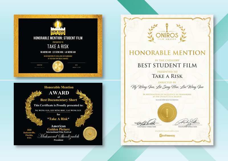 “Take a Risk”, filme realizado pelos alunos do Instituto Politécnico de Macau, ganhou três prémios em festivais de cinema internacionais
