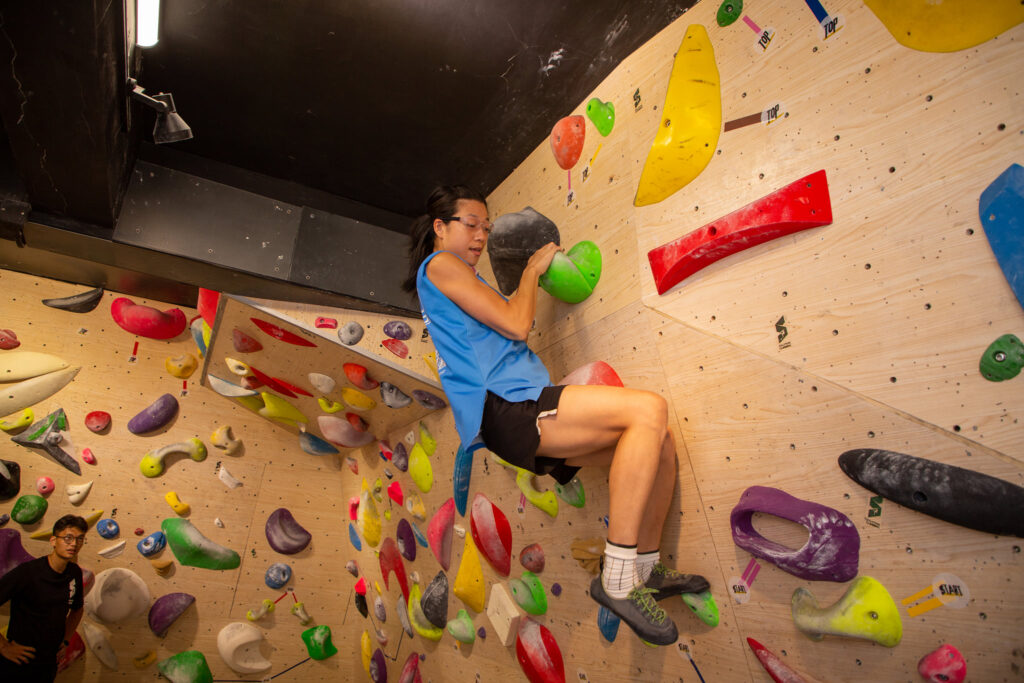 Entre as variantes, no Solution Climbing Gym ensina-se e pratica-se a escalada em blocos (conhecida por “bouldering”, em inglês), a mais famosa e acessível porque se faz com colchões, reduzindo os riscos. “Independentemente da variante, é um desporto importante que treina várias valências: a confiança, porque só assim se consegue concretizar o objectivo de terminarmos e chegarmos ao cimo; superação, porque testa os limites físicos e mentais, e força, dada a gravidade”, enumera Vincent Lo, fiel ao desporto há 10 anos. “Além disso, importa sublinhar que também é relevante em termos mentais. Ninguém nos pode ajudar, é uma batalha individual, que se trava só connosco.”