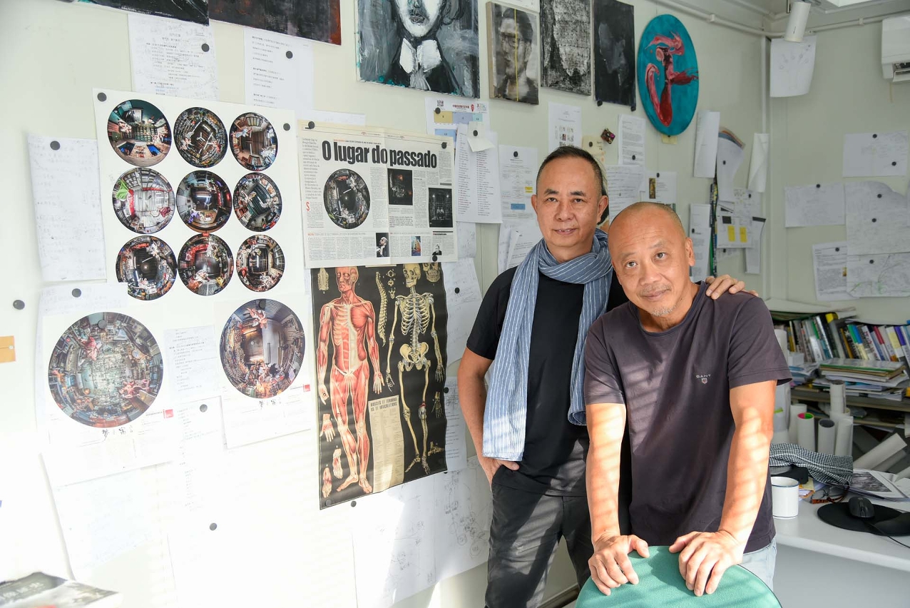 Os artistas Ung Vai Meng (esq.) e Chan Hio Io (dir.) (Foto: Leong Sio Po)
