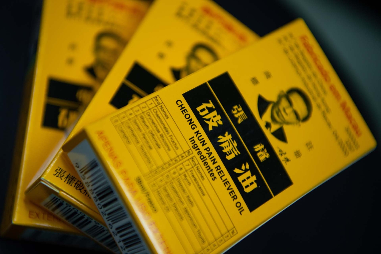 Há cerca de sete décadas que o Óleo Analgésico Cheong Kun é presença quase que obrigatória nas caixas de primeiros socorros das famílias em Macau. A fama do produto já galgou fronteiras e são muitos os turistas que também o apreciam. Motivos que justificaram que a empresa responsável pela sua produção, a Fábrica de Anodino Óleo Herbario Medicinal Chinesa Cheong Kun (Macau) Limitada, tenha recebido do Governo, em Janeiro, a Medalha de Mérito Industrial e Comercial, distinguindo os seus contributos para o desenvolvimento da medicina tradicional chinesa no território.