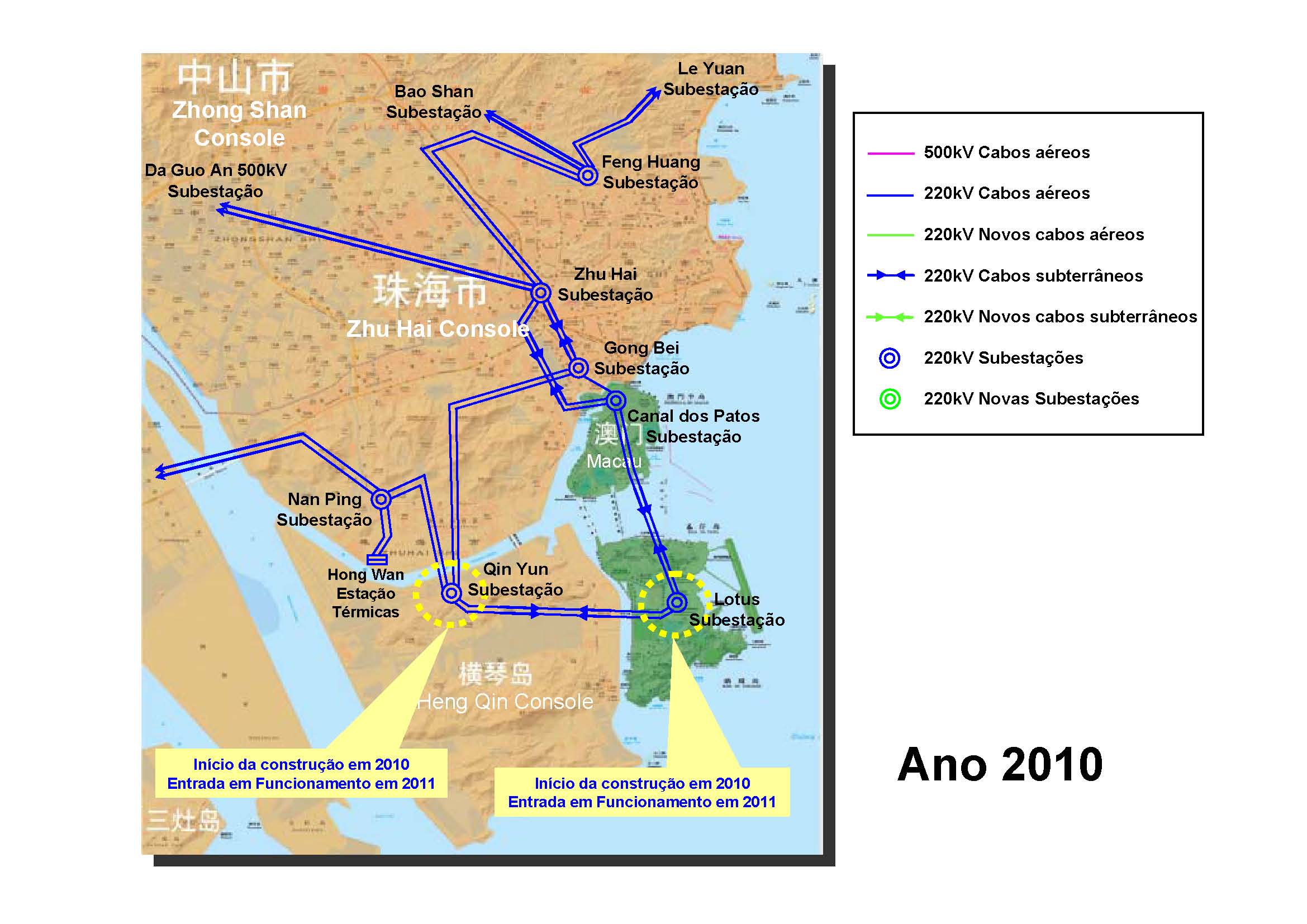 O Governo da RAEM e a CSPGC, respeitando os conteúdos do Protocolo, incumbiram terceiros da execução do “Estudo do Plano de Transmissão Eléctrica da CSPGC para Macau, 2010-2020”, que será útil para a elaboração dos planos de transmissão eléctrica entre 2010 e 2020, permitindo a definição da construção de infra-estruturas destinadas à rede eléctrica. Nesse sentido, ambas as partes incumbiram, no ano transacto, o “Guangdong Electric Power Design Institute” da realização do “Estudo do Plano de Transmissão Eléctrica da China Southern Power Grid Corporation Ltd. (CSPGC) para Macau, 2010-2020” bem como dos trabalhos relacionados, tendo analisado as condições e a distribuição dos recursos energéticos de Macau e das cinco províncias do Sul (regiões), bem como, a actual situação e o plano de desenvolvimento das redes da CSPG, de Guangdong e de Zhuhai; em conjugação com o plano de transmissão eléctrica de Macau com a CSPGC e, sob a premissa de garantir um fornecimento segundo os princípios de segurança, economia, racionalidade, viabilidade e coordenação entre o planeamento a longo e curto prazo, estudar as opções da transmissão de electricidade da rede da CSPG para Macau.