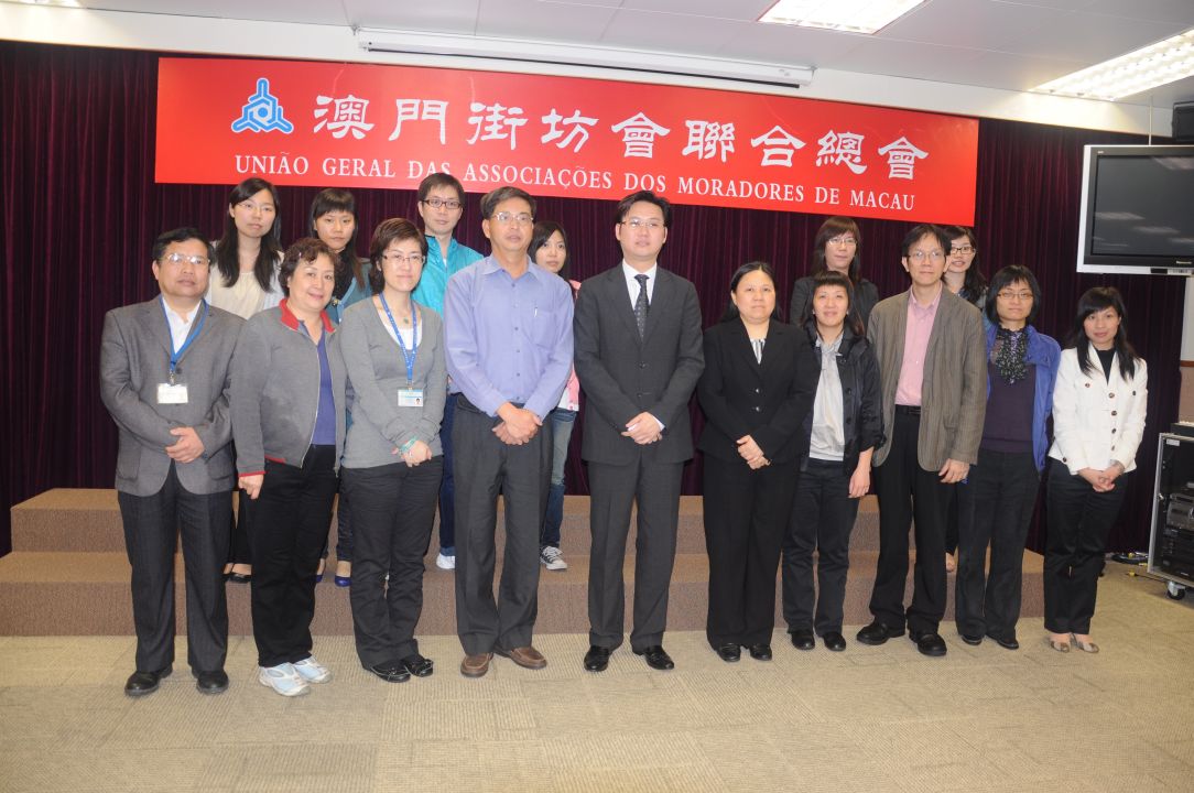 Naquele dia, à tarde, a delegação visitou à União Geral das Associações dos Moradores de Macau (UGAMM) e foi acolhida, com entusiasmo, pelo Vice-Presidente, Leong Heng Kao, pela Vice-Presidente e Secretária, Ng Sio Lai, e a sub-chefe do Centro de Serviços da Zona Norte, Fong Sok Teng (tradução).