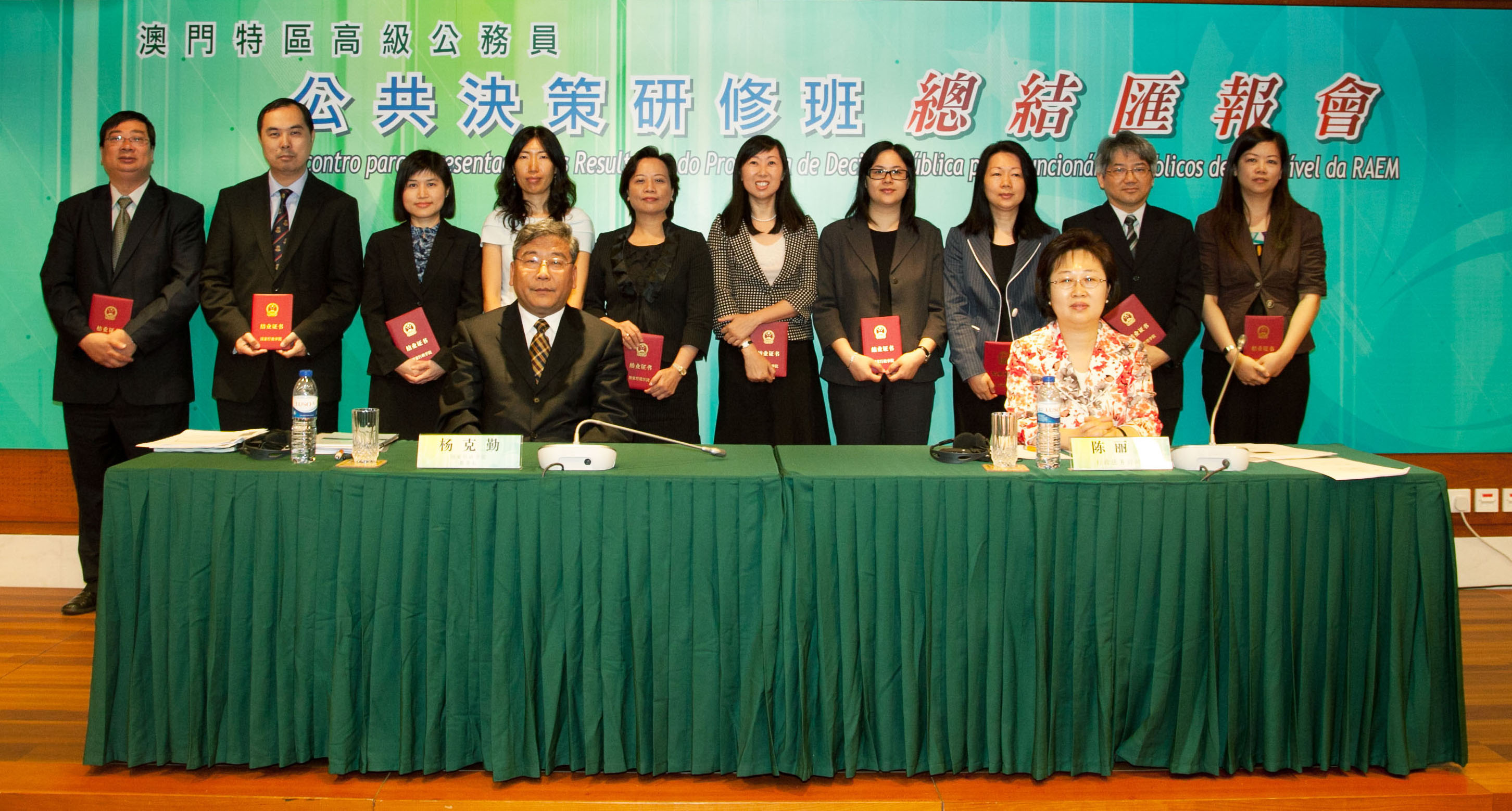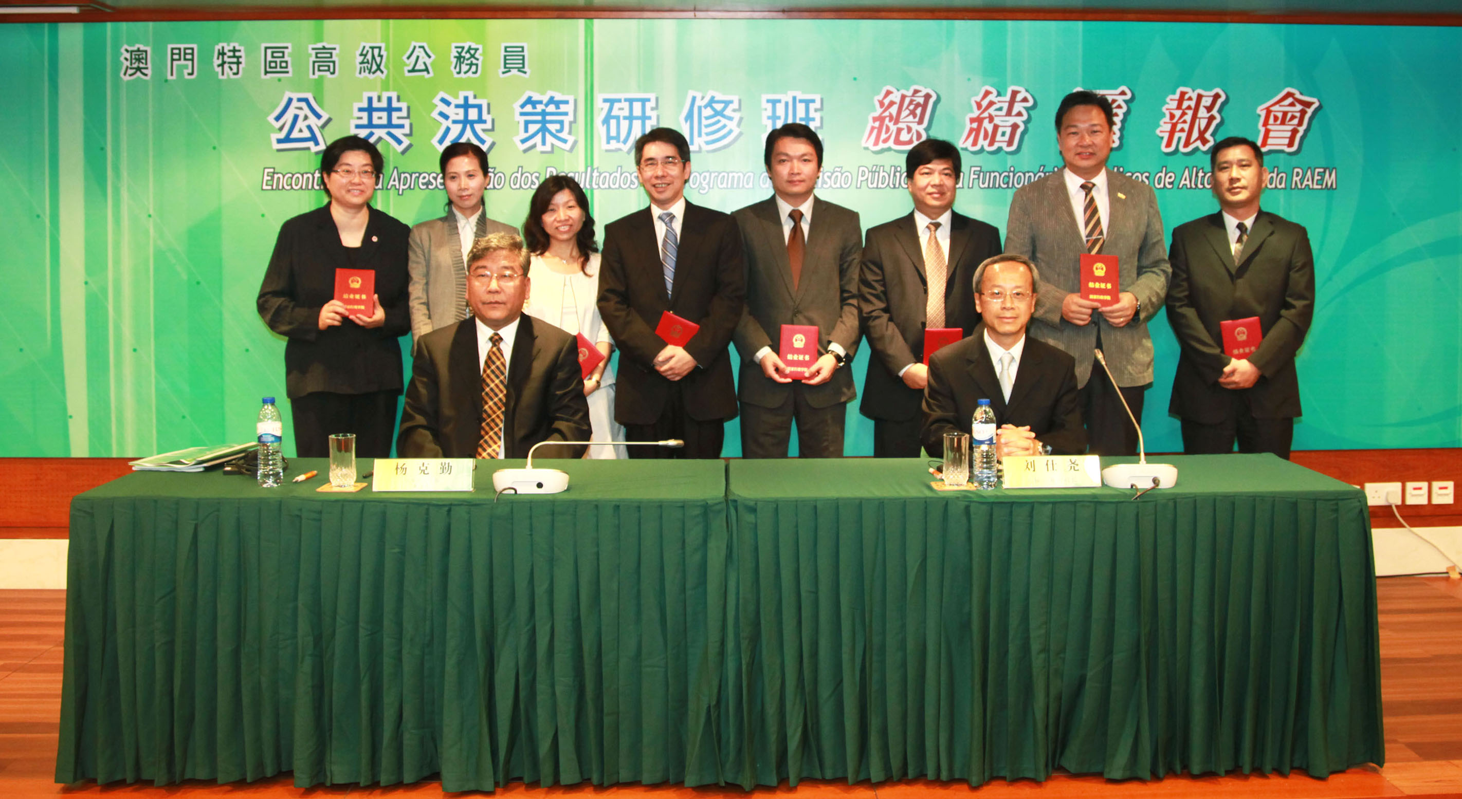 O Programa que teve o seu início em Julho de 2007 destinou-se ao pessoal dirigente da RAEM, tendo no mesmo sido adoptado o conceito de “aprendizagem pela acção” em que se exige aos formandos a realização de práticas com temas de estudo específicos, com vista à elevação da sua capacidade na tomada de decisões públicas. Constituíram temas de estudo, nomeadamente políticas e medidas relacionadas com a sociedade e a vida dos cidadãos e acções de reforma constantes no “Programa de Reforma da Administração Pública”. O curso é dividido em duas fases, consistindo a 1.ª fase em estudos teóricos realizados no INA em Pequim durante cinco dias e a 2.ª fase numa “aprendizagem pela acção” durante 9 meses em Macau, sobre temas relacionados com as políticas e medidas do Governo. Foram realizadas oito edições do Programa, sete das quais em língua veicular chinesa e uma em língua portuguesa, tendo nelas participado um total de 21 grupos de formandos provenientes dos diversos serviços públicos que fizeram uma aprendizagem contínua que incluiu actividades práticas, ficando sujeitos à apresentação de relatórios que incluíam propostas ou projectos concretos.