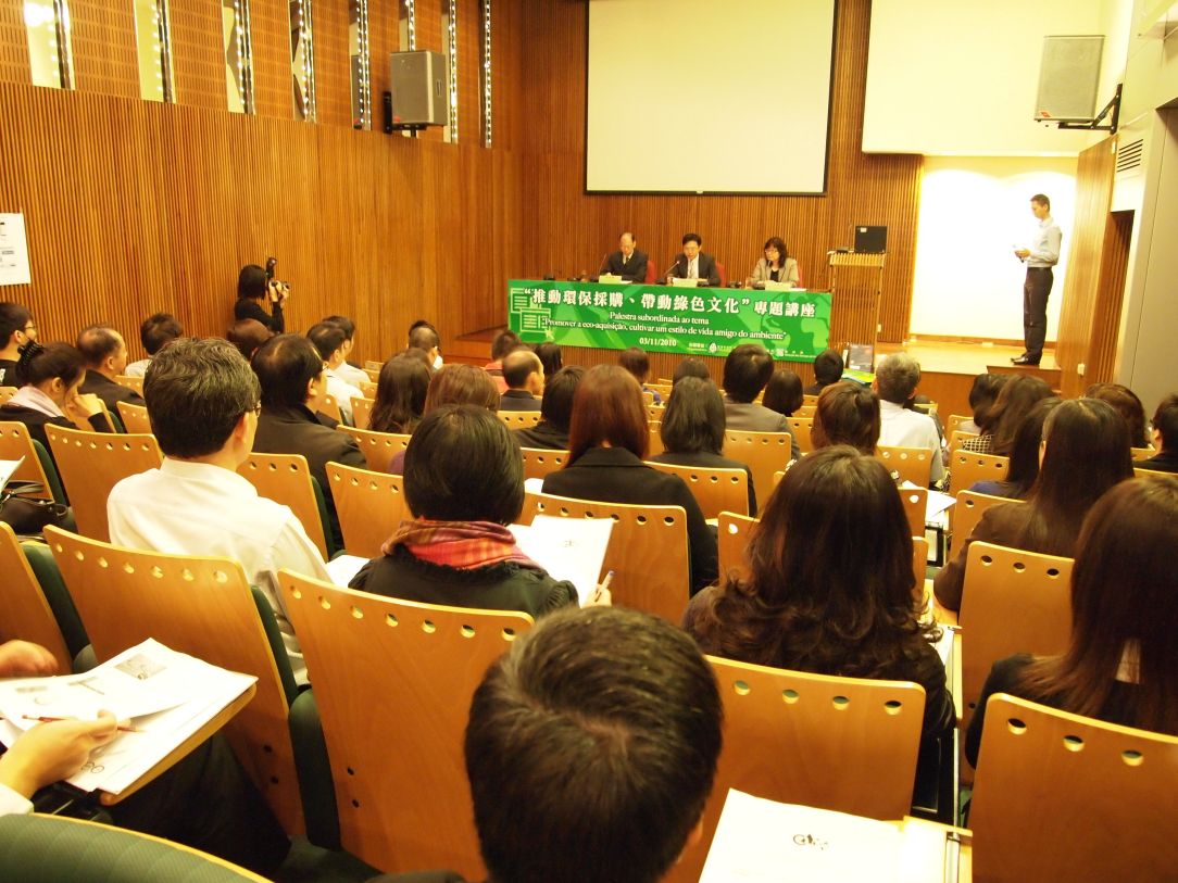 Para sensibilizar os serviços públicos sobre a necessidade de optar pela eco-aquisição, com vista a um estilo de consumo mais ecológico, e promover a criação do eco-mercado será realizada, no mês de Novembro de 2010, uma série de seminário e acções de formação, subordinados ao tema “Promover a eco-aquisição, cultivar um estilo de vida amigo do ambiente”, organizados pela Direcção dos Serviços de Protecção Ambiental (DSPA), Direcção dos Serviços de Administração e Função Pública e Direcção dos Serviços de Finanças (DSF). O seminário será realizado no dia 03 de Novembro, no Auditório do Edifício Administração Função, e as restantes acções de formação serão realizadas, sucessivamente, nos dias 10, 17, 24 e 30 de Novembro.
