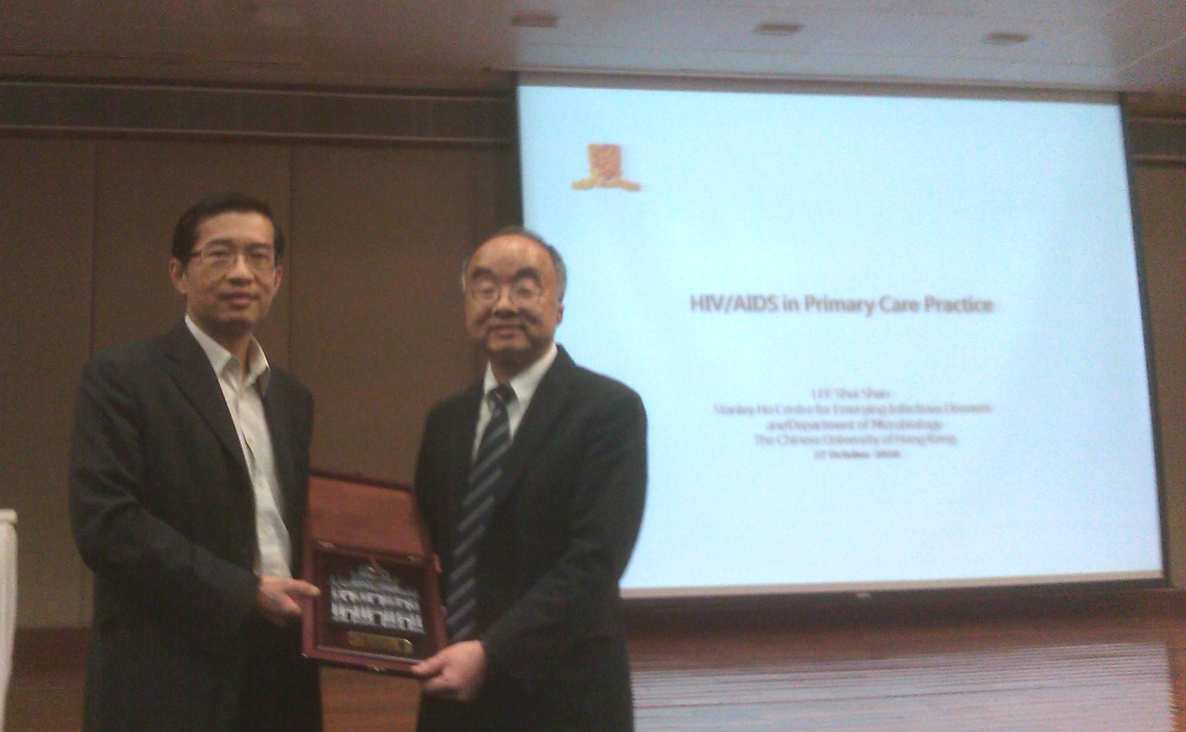 Na “Palestra sobre Prevenção da SIDA na área de Cuidados de Saúde Primários”, foi convidado o professor Lei Shui San, do Centro de Estudo de Prevenção e Tratamento de Doenças Transmissíveis Stanley Ho da Universidade Chinesa de Hong Kong para proferir um discurso temático. Na ocasião, o Professor Lei partilhou com mais de uma centena de profissionais de saúde as informações actuais sobre a prevenção e tratamento da SIDA, permitindo-lhes intensificar o conhecimento sobre a prevenção e tratamento da SIDA na área de Cuidados de Saúde Primários.