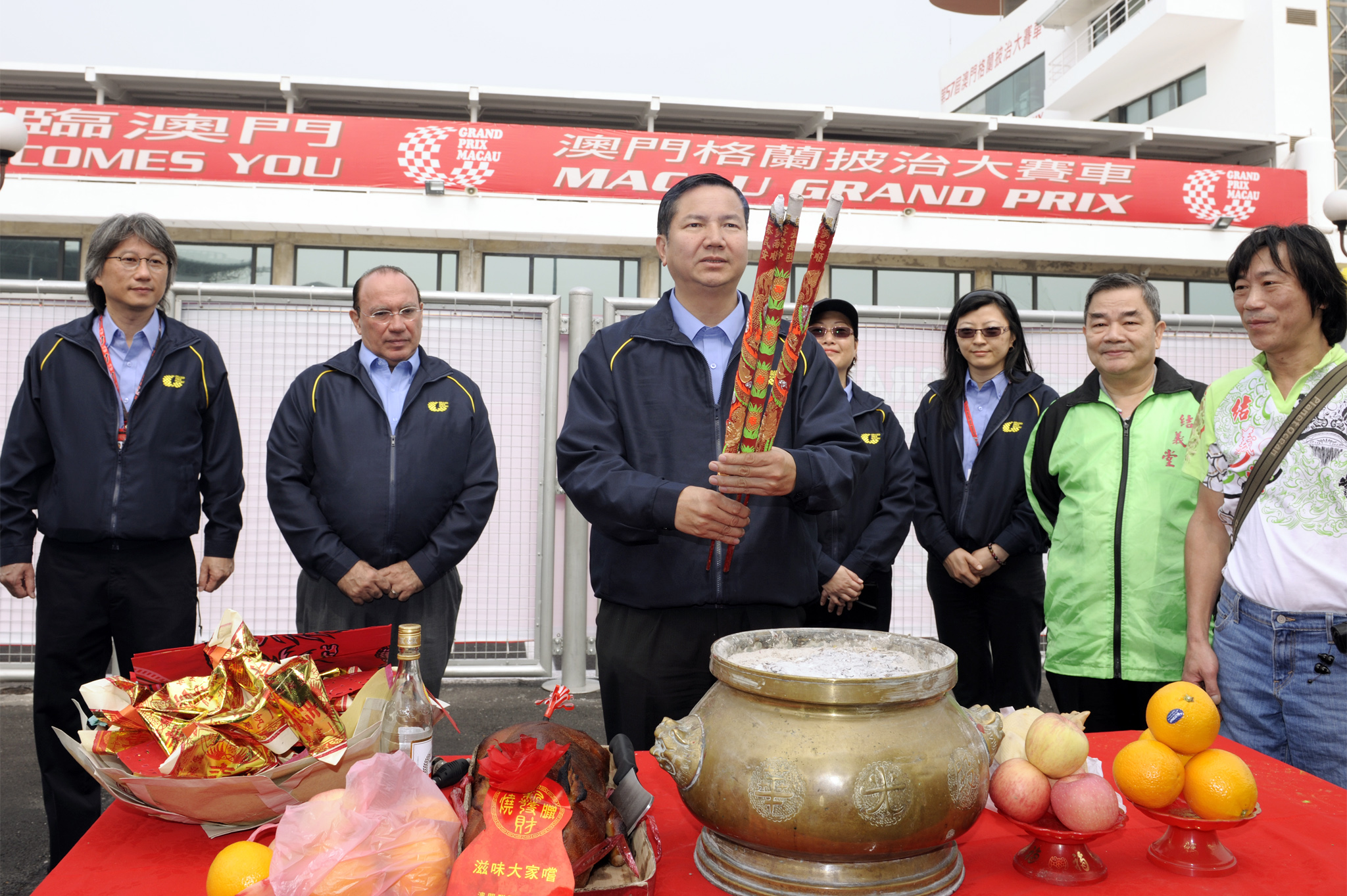 O secretário para os Assuntos Sociais e Cultura e presidente da Comissão do Grande Prémio de Macau (CGPM), Cheong U, presidiu hoje (16 de Novembro) ao ritual de Pai San do 57º Grande Prémio de Macau, no Parc Fermé, uma cerimónia simples, mas solene, para desejar sucesso e que tudo corra bem nesta edição do evento.