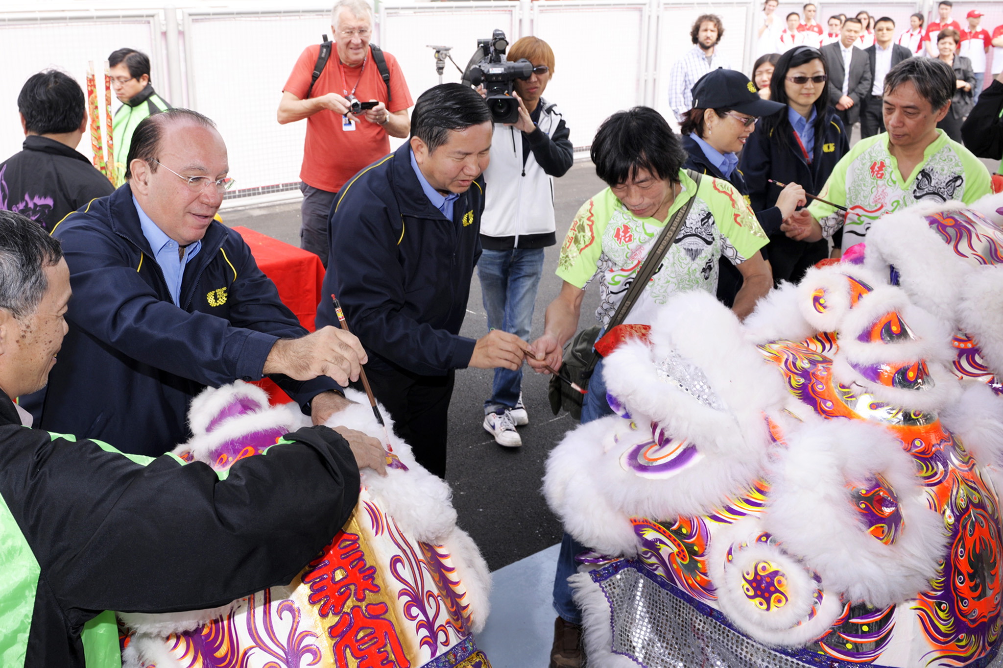 Cheong U começou por tirar uma foto com todos os presentes, incluindo o coordenador, Costa Antunes, e membros da Comissão, bem como os coordenadores e membros das subcomissões, antes do início do tradicional ritual e da vivificação e dança do leão.