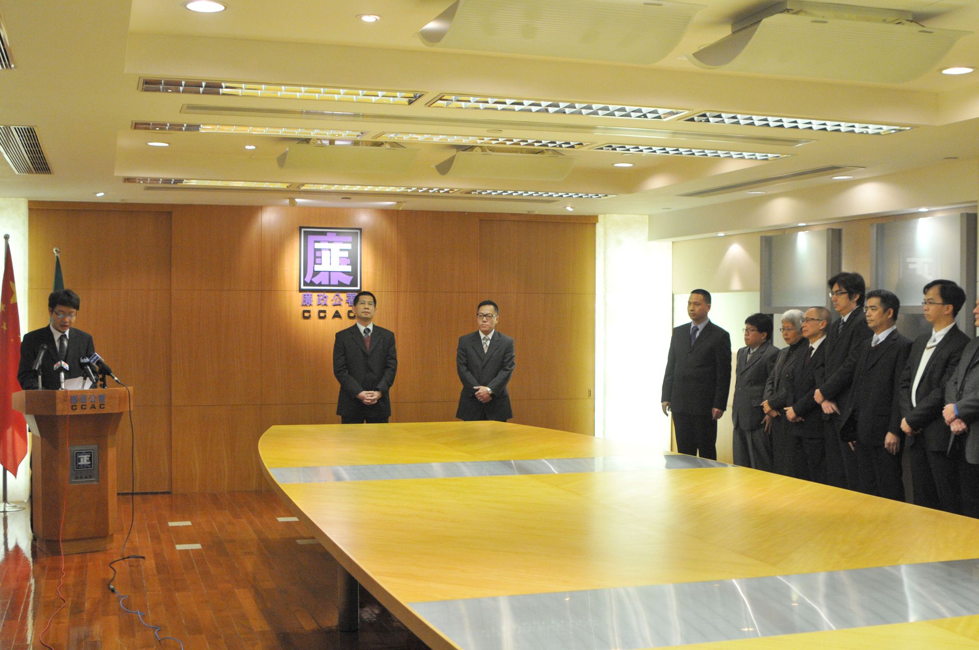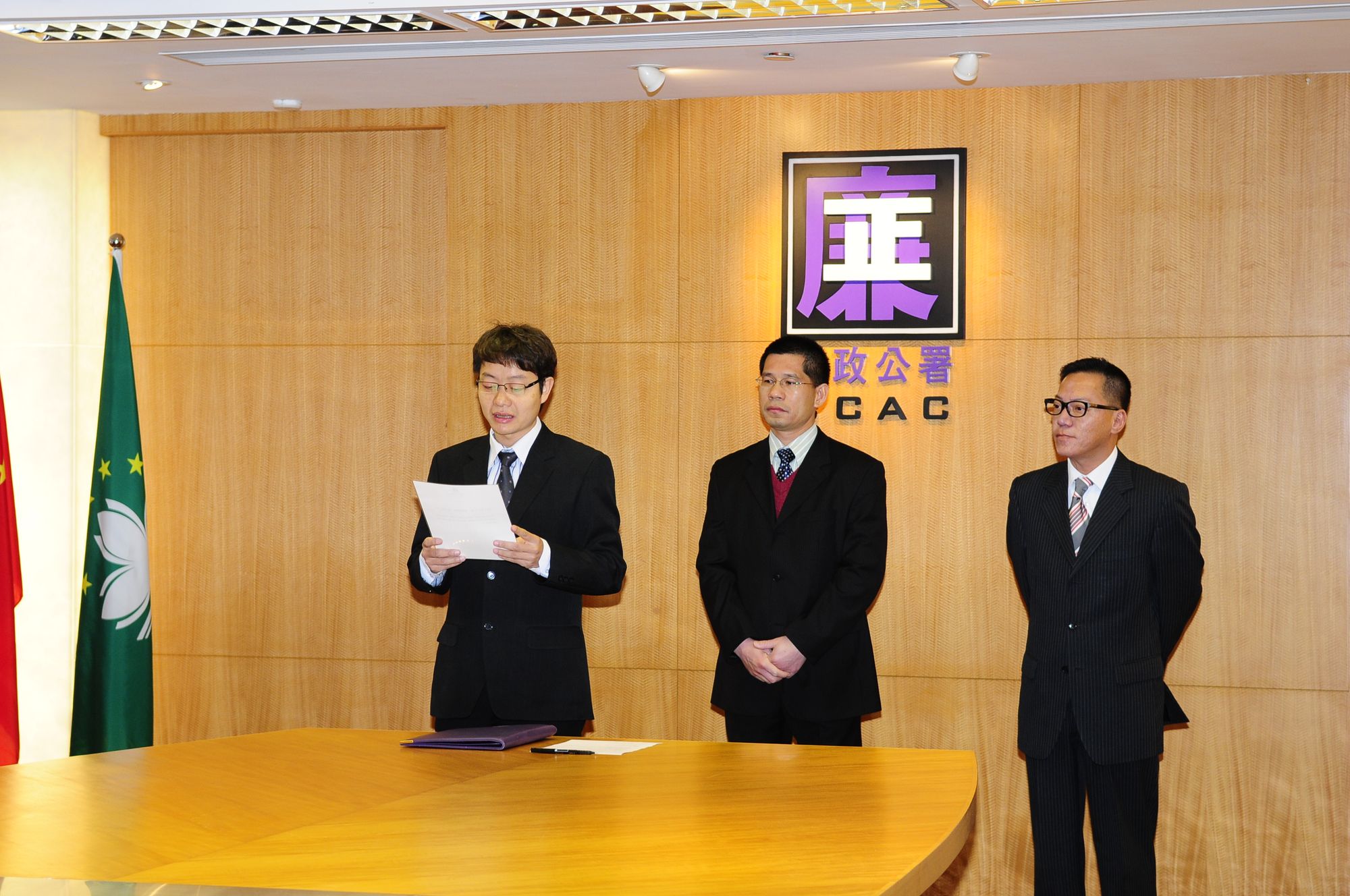 O Comissário contra a Corrupção, Fong Man Chong, aproveitou a ocasião para agradecer o apoio e a confiança depositada pelos diferentes sectores ao trabalho do CCAC, considerando a auscultação da opinião pública um dos princípios fundamentais para alcançar os objectivos pretendidos. Razão pela qual o CCAC irá colaborar com diferentes sectores para promover a sensibilização dos valores da integridade e a construção de uma sociedade íntegra. Fong Man Chong manifestou ainda a convicção de que o novo Adjunto do Comissário, Kuan Kun Hong, aplicando os seus conhecimentos jurídicos e a sua larga experiência no âmbito das técnicas de investigação, com espírito de equipa, conseguirá virar uma nova página nos trabalhos relativos ao combate da corrupção e à promoção da integridade.