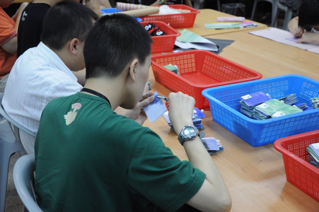 Visando implementar a ideia da redução de resíduos “a partir da fonte”, a DSPA está a promover a cooperação com o Centro Pou Choi da Associação de Reabilitação Fu Hong de Macau, aproveitando os materiais de náilon, extraído dos “banners” e “backdrop” usados, para produzir pastas de cartão. Estas pastas são feitas por formandos com deficiências mentais e evidenciam a importância da reciclagem e reutilização ao permitir transformar resíduos em produtos úteis. Cada peça produzida simboliza, assim, uma forma sobre como proteger o nosso ambiente.