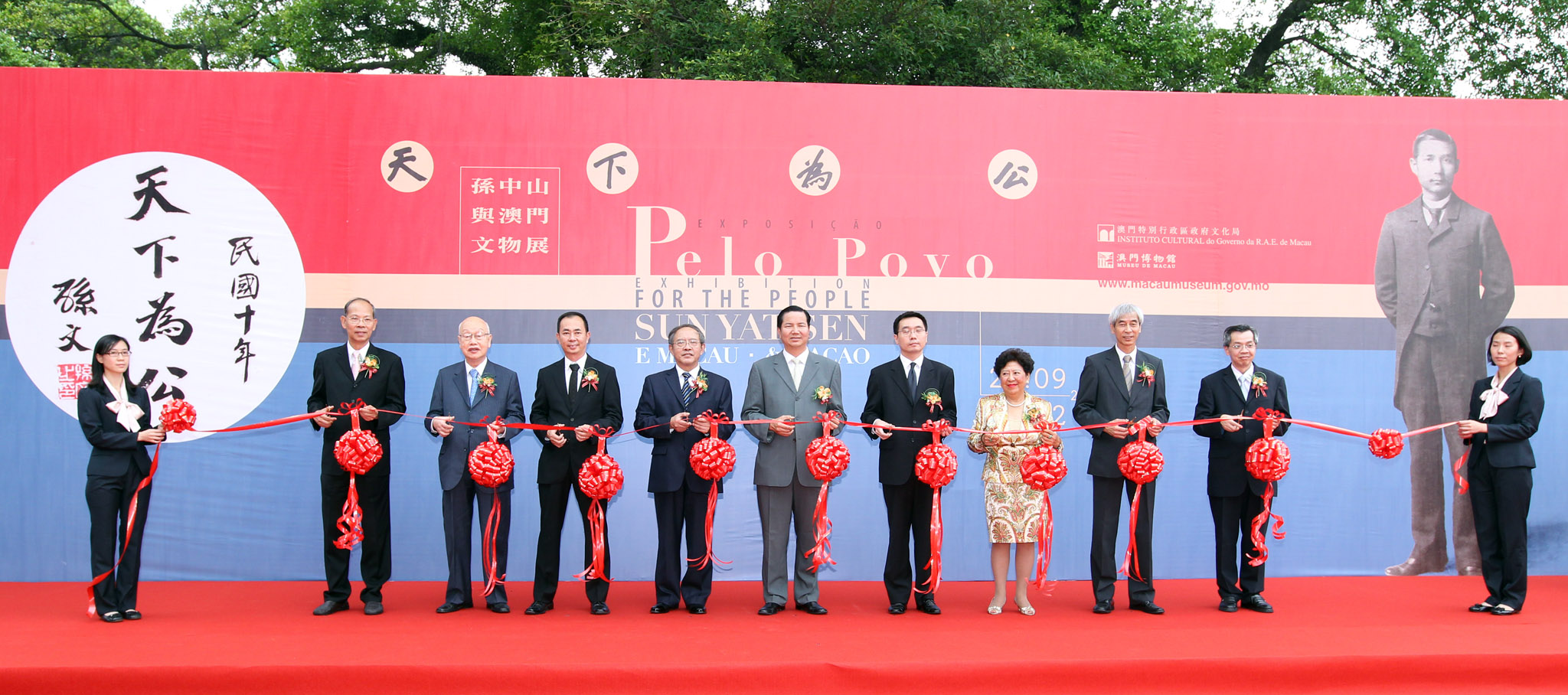 A Exposição “Pelo Povo – Sun Yat Sen e Macau” foi inaugurada ontem (dia 23 de Setembro) à tarde, no Museu de Macau, organismo dependente do Instituto Cultural. A cerimónia de inauguração foi presidida pelo Secretário para os Assuntos Sociais e Cultura do Governo da R.A.E.M., Dr. Cheong U, pelo Vice-comissário do Ministério dos Negócios Estrangeiros na R.A.E.M., Sr. Mao Siwei, pelo Director do Departamento para a Cultura e Educação do Gabinete de Ligação do Governo Popular Central na RAEM, Liu Weining, pelo Presidente do Instituto Cultural, Dr. Ung Vai Meng, pela neta do Dr. Sun Yat Sen, Drª. Lily Sun, pelo Vogal do Conselho Consultivo de Cultura, Sr. Lei Pang Chu, pelo Presidente da União Geral das Associações de Moradores de Macau, Sr. Leung Heng Teng e pelo Presidente da Associação de Educação de Macau, Sr. Lei Pui Lam.