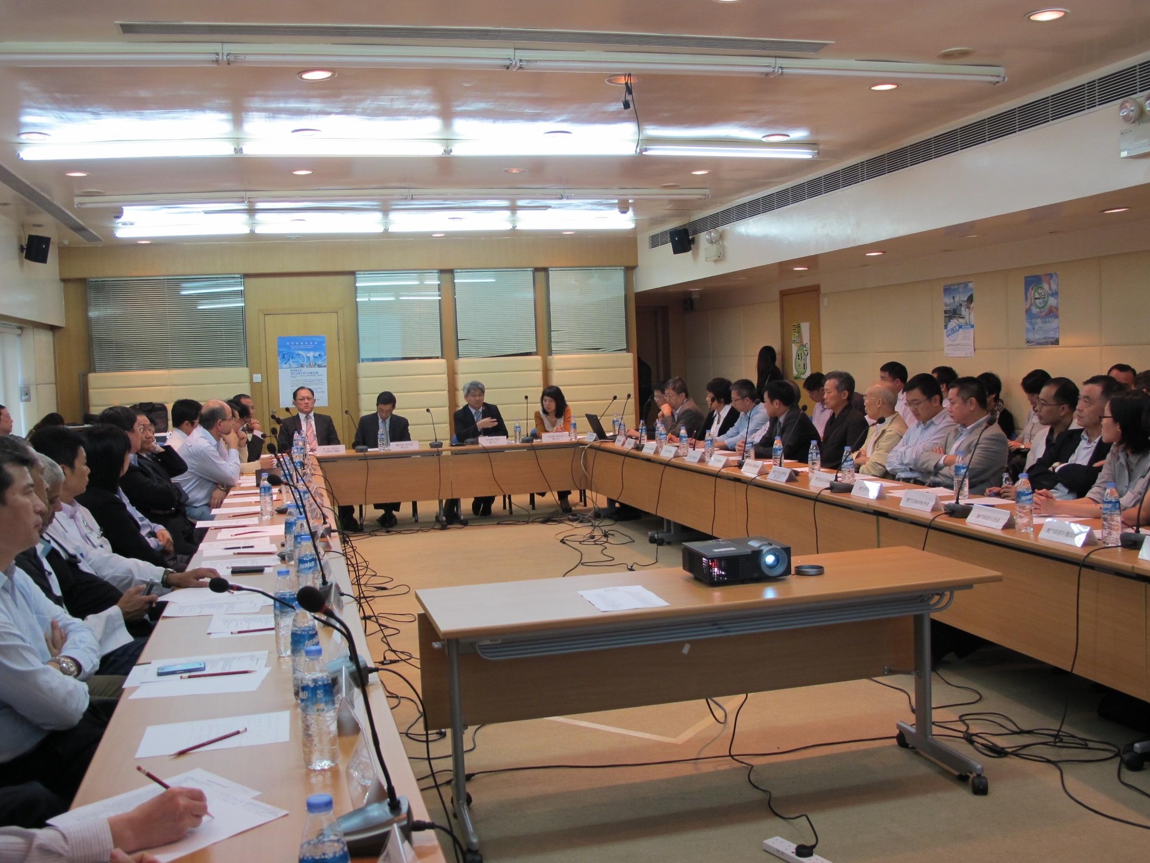 O director dos Serviços de Saúde, Dr. Lei Chin Ion, o subdirector, Dr.Cheang Seng Ip, a subdirectora, Dra. Ho Ioc San e o director subst.º do C.H.C.S.J., Dr. Ng Hou realizaram, nos dias 8 e 9 de Novembro, uma reunião consultiva para a recolha de opiniões com os representantes das 59 associações médicas, incluindo os médicos de medicina ocidental, médicos dentistas, médicos de medicina tradicional chinesa, farmacêuticos, laboratoristas, enfermeiros, terapeutas, técnicos de diagnóstico e terapêutica, assim como médicos adjuntos.