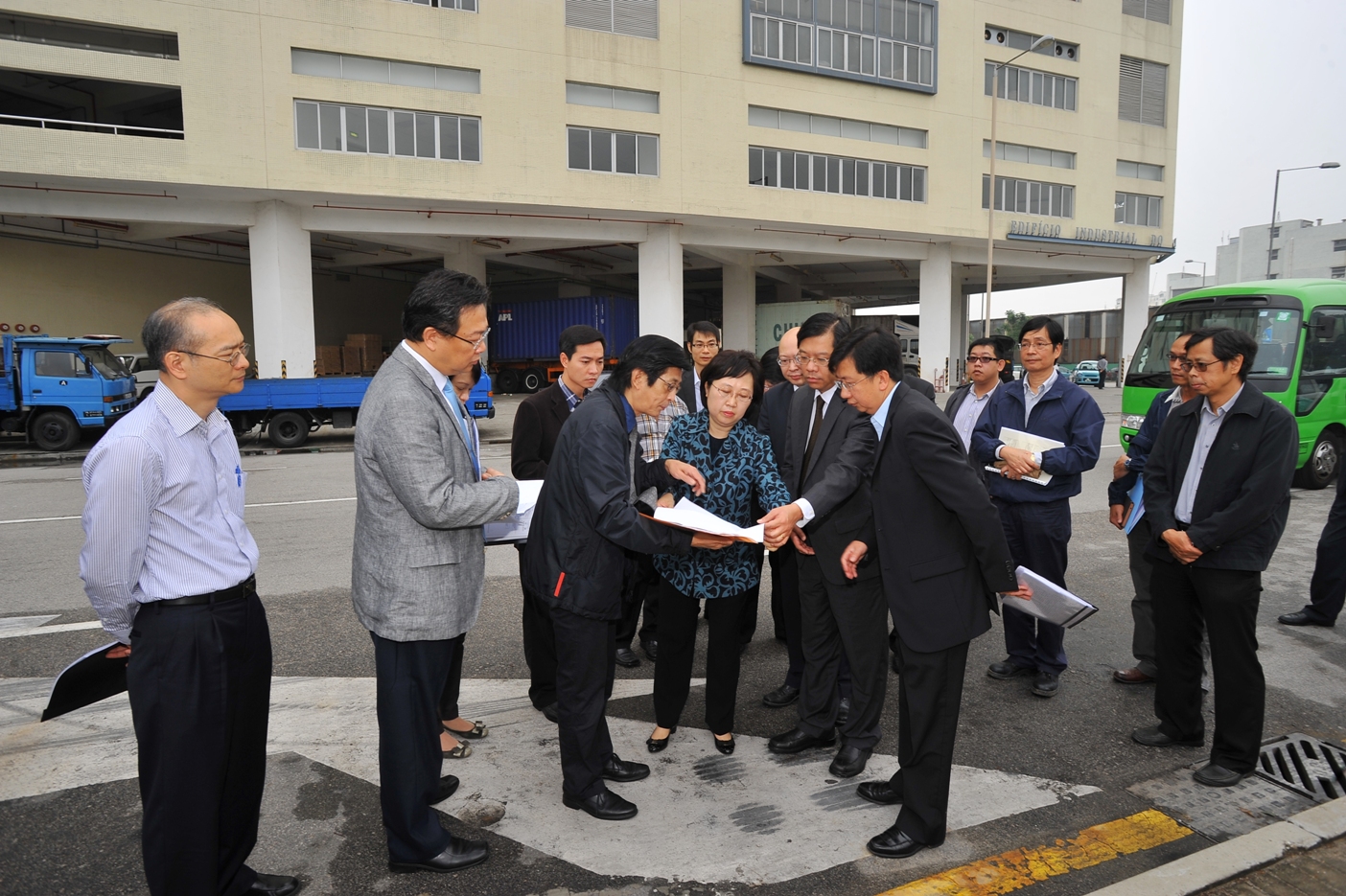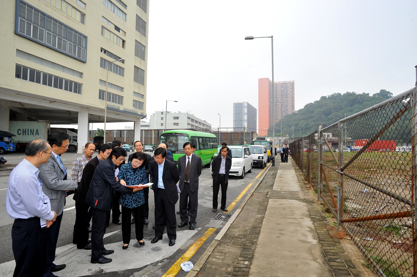 A Secretária para a Administração e Justíça, Florinda da Rosa Silva Chan, acompanhada do Presidente do Conselho de Administração do IACM, Tam Vai Man, o Director da Direcção dos Serviços de Economia, Sou Tim Peng, o Director da Direcção dos Serviços de Solos, Obras Públicas e Transportes, Jaime Roberto Carion, e o assessor do Gabinente do Secretário para a Economia e Finanças, Sam Kam San, inspeccionou o local seleccionado para o novo mercado abastecedor, localizado na Zona de Macau do Parque Industrial Transfronteiriço Zhuhai-Macau, a fim de conhecer os trabalhos planeados sob a colaboração conjunta entre os serviços e o seu funcionamento. O Presidente do IACM, Tam Vai Man, e o Director da DSSOPT, Jaime Roberto Carion, esclareceram ainda o projecto de construção e o andamento de planeamento, executanto gradualmente os respectivos trabalhos.