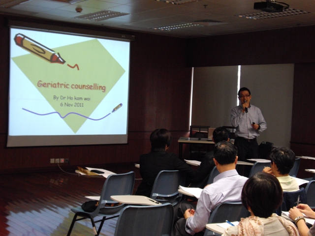 Face ao rápido crescimento da população idosa e ao envelhecimento contínuo da população em geral no território, o Governo da Região Administrativa Especial de Macau tem estado empenhado na prestação de cuidados de saúde gratuitos aos idosos através dos centros de saúde. Ao mesmo tempo, a fim de fortalecer os conhecimentos dos médicos e enfermeiros dos Centro de Saúde sobre a medicina geriátrica, os Serviços de Saúde realizaram, nos domingos de Novembro e Dezembro de 2011, em colaboração com o Hong Kong College of Family Physicians, o Curso de Certificação em Cuidados de Saúde Primários da Área Geriátrica, com a duração de 4 dias, tendo sido convidados 10 médicos de família do Hong Kong College of Family Physicians ou especialistas em medicina geriátrica provenientes de outros organismos para darem aulas ou intercâmbios. O conteúdo do curso abrangeu principalmente : 1) diagnóstico e tratamento das doenças vulgares nos idosos, por exemplo, danos da visão e audição dos idosos, desnutrição, acidente vascular cerebral, osteoporose, obstipação e incontinência urinária, diabetes, doença de Parkinson, insuficiência cardíaca congestiva, distúrbios do sono, problemas músculo-esqueléticos, problemas de bexiga, etc., (2) técnicas de aconselhamento de idosos, tratamento de idosos com ansiedade e depressão, (3) avaliação dos idosos, (4) relação entre a integração dos serviços médicos na sociedade e os problemas especiais das pessoas de meia-idade e idade avançada, (5) introdução da doença degenerativa do cérebro e do envelhecimento da saude, (6) administração de medicamentos para as doenças dos idosos. Um total de 41 profissionais de saúde concluíram este curso e obtiveram o respectivo certificado atribuído pelo Hong Kong College of Family Physicians.
