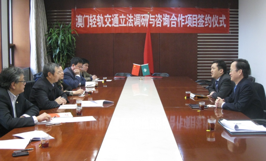 Com vista a intensificar a cooperação e a conexão entre Macau e a China Continental nos regimes jurídicos de transporte ferroviário, sob o quadro do “Memorando de Cooperação para os Apoios Técnicos Estabelecido entre a China Continental e o Projecto do Sistema de Metro Ligeiro de Macau”, o Gabinente para as Infra-estruturas de Transportes (GIT) assinou o “Acordo de Cooperação para a Legislação, Pesquisa e Consulta sobre o Transporte de Metro Ligeiro de Macau” com a China Academy of Urban Planning & Design, implementando oficialmente os trabalhos de pesquisa e consulta dos diplomas legais do Metro Ligeiro. O acordo de cooperação não só pode reforçar o intercâmbio do projecto de carris entre as partes, mas também aumentar directamente as oportunidades para a unidade académica local a participar no projecto de Metro Ligeiro.