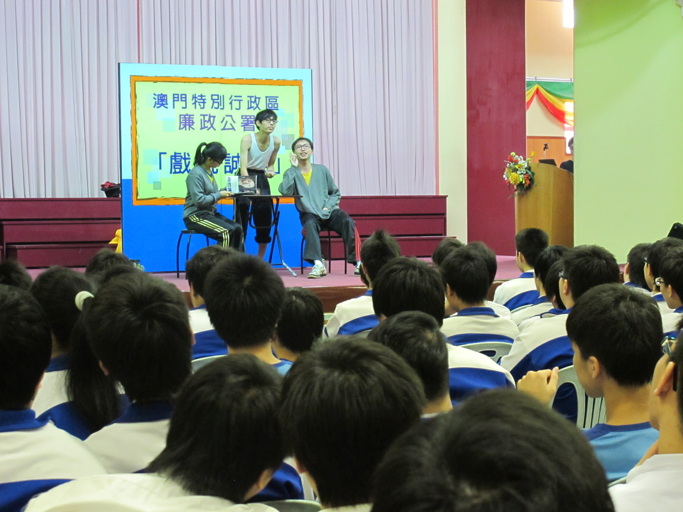 Os destinatários da actividade foram os alunos do 3.º ano do ensino secundário e do ensino secundário complementar. O CCAC elaborou especificamente uma história sob o tema da integridade, que reporta a realidade quotidiana do jovem, nomeadamente, alguns actos possíveis contra a honestidade e a integridade, no intuito de chamar a atenção dos estudantes para a possibilidade de serem aliciados para práticas corruptas. Através desta actividade, pretendeu-se aumentar a vigilância dos jovens sobre os actos ilícitos e evitar que os mesmos caiam, por engano, nas malhas da justiça, promovendo assim a formação de jovens íntegros e honestos.