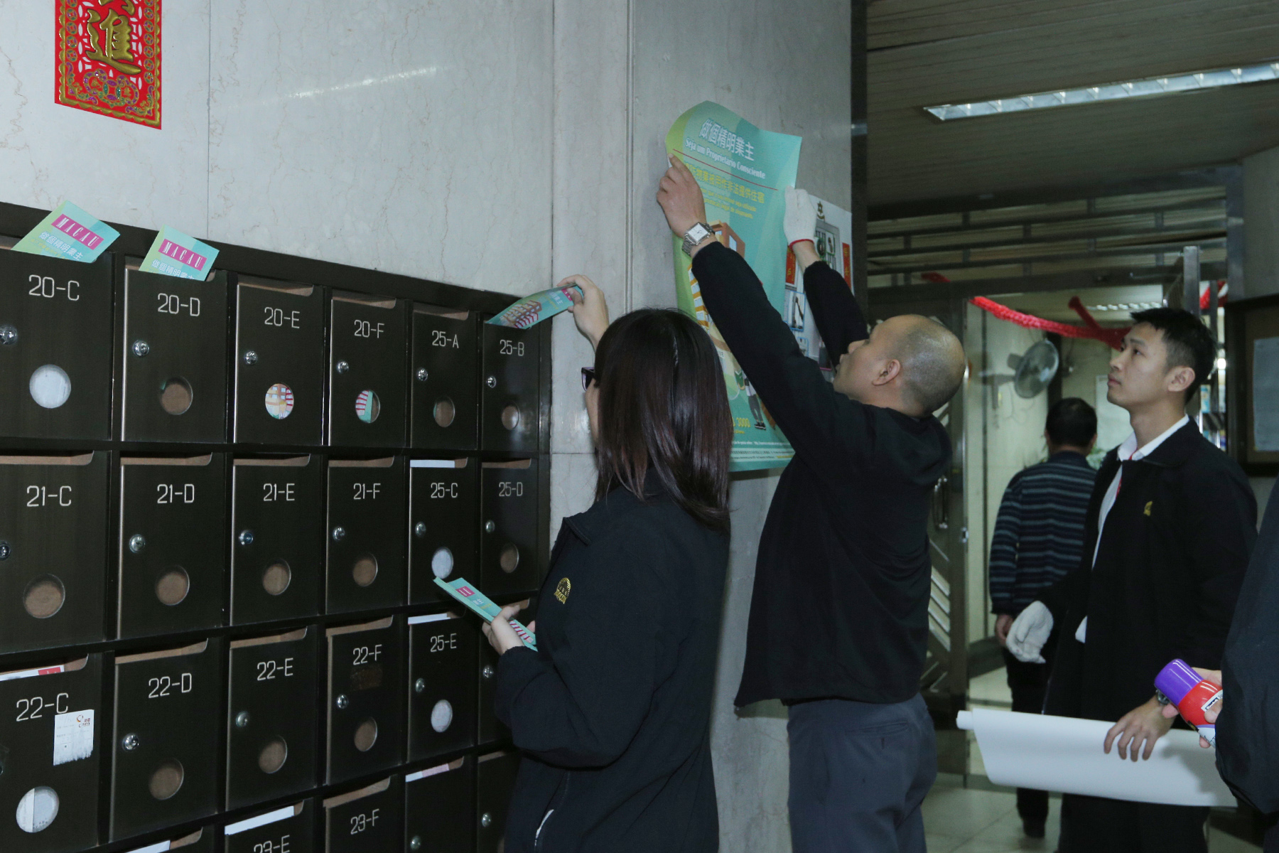 Maria Helena de Senna Fernandes, acompanhada do subdirector da DST, Manuel Pires, e chefias relacionadas da DST, visitou hoje (dia 4) condomínios e porteiros dos Edifícios “I” e do Edifício Centro Internacional de Macau, no ZAPE, para aferir a situação no terreno e auscultar a opinião de moradores e associações vocacionadas, e ao mesmo tempo divulgar os novos panfletos informativos, para promover o combate à prestação ilegal de alojamento.