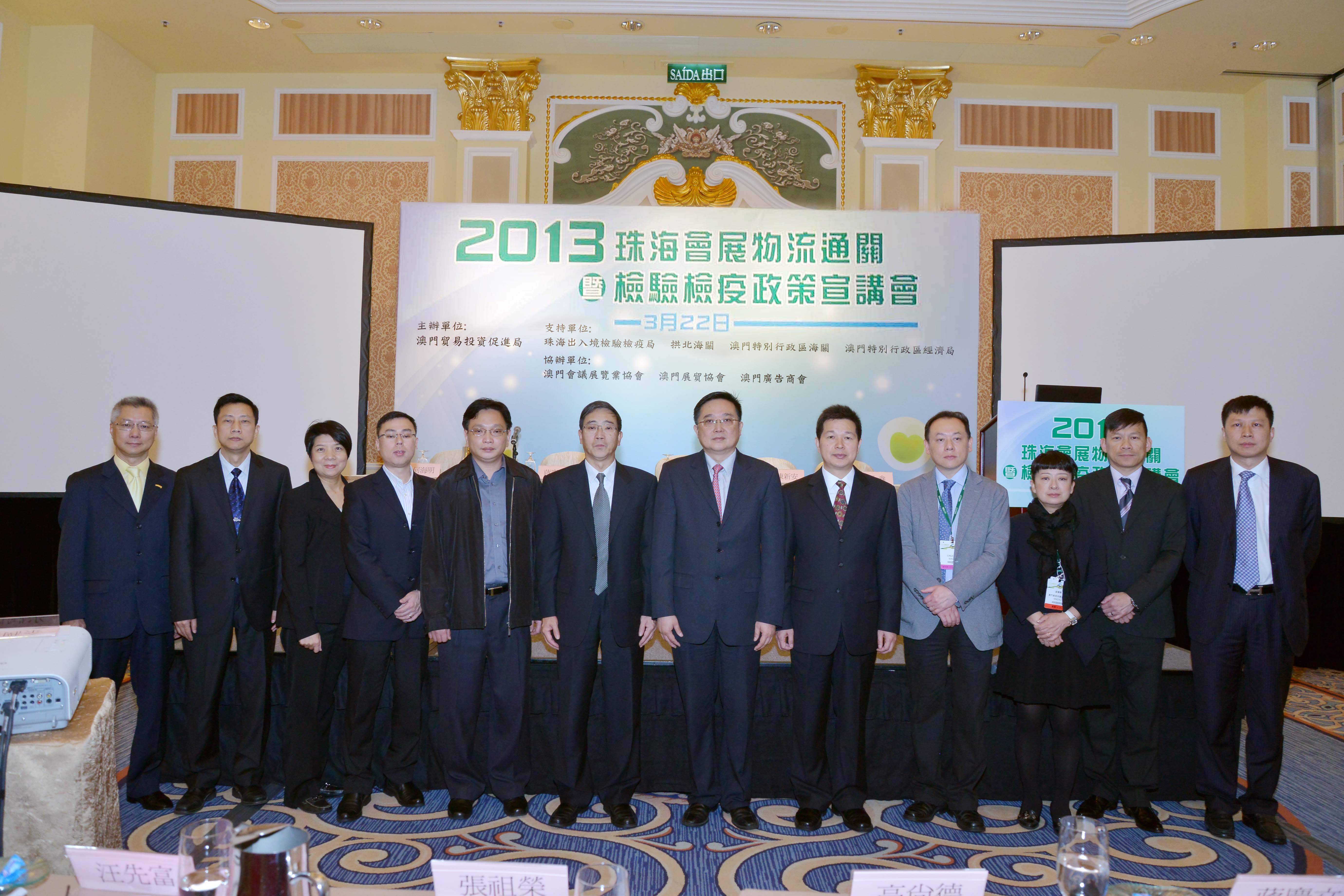 Organizado pelo Instituto de Promoção do Comércio e do Investimento de Macau (IPIM), tendo como entidades de apoio, os Serviços de Inspecção e Quarentena para a Saída e Entrada de Zhuhai, os Serviços de Alfândega de Gongbei, os Serviços de Alfândega de Macau e a Direcção dos Serviços de Economia de Macau, e, como entidades coordenadoras, as Associação de Convenções e Exposições de Macau, Associação de Comércio e Exposições e Macau e Associação das Companhias e Serviços de Publicidade de Macau, realizou-se às 11:00 horas do dia 22 de Março de 2013, no Sicily Room do Venetian Macao-Resort-Hotel, o Seminário de Disseminação da Política sobre Logística, Desembaraço Aduaneiro, Inspecção e Quarentena relativa às Feiras, Aplicada em Zhuhai, Edição de 2013.