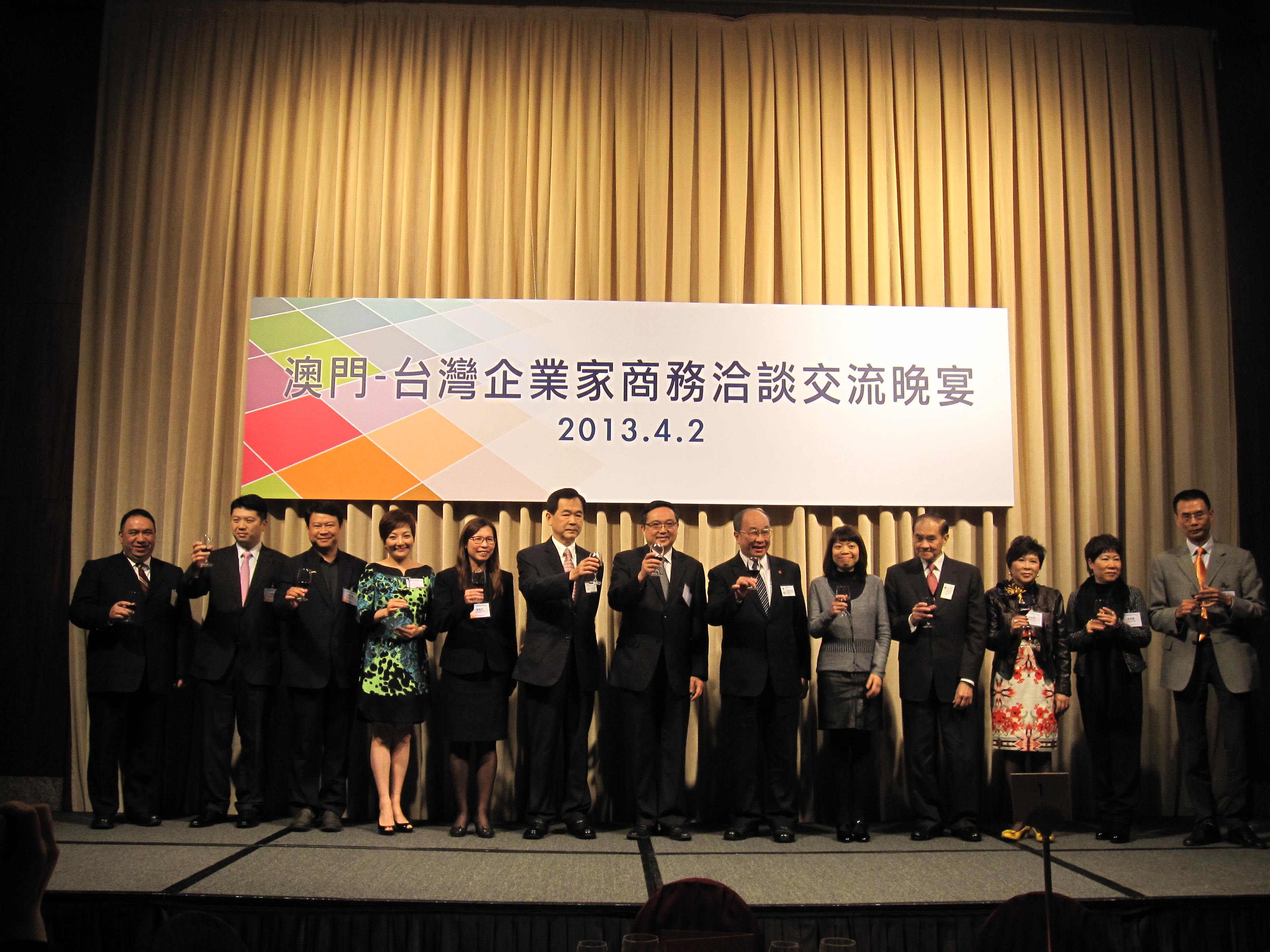 Com vista a promover com maior intensidade o intercâmbio entre as empresas de Macau e as suas congéneres de Taiwan, o IPIM organizou, em 2 de Abril, conjuntamente o Taiwan Trade Center, um jantar de intercâmbio para as empresas de Macau e de Taiwan, tendo convidado para o evento representantes de diversas marcas de prestígio de Taiwan, com vista a contactos com os membros da Delegação Empresarial de Macau, explorando em conjunto, oportunidades de cooperação. O Presidente do IPIM, Dr. Jackson Chang, proferiu o discurso de boas-vindas, tendo, seguidamente, a Vogal Executiva do IPIM, Dra. Echo Chan, feito uma apresentação aos aproximadamente 150 convidados, provenientes de Macau e de Taiwan, sobre o ambiente de negócios em Macau, e promoção da 2013MFE. Por sua vez, o Presidente e CEO de Taiwan Trade Center, Yuen-Chuan Chao, deu as mais calorosas boas vindas aos membros da Delegação Empresarial de Macau tendo, seguidamente, a Directora de Projectos do Departamento de Pesquisa de Mercado da referida organização, Vicky Lin, feito uma introdução relativa à presente situação económica e comercial em Taiwan. Estiveram presentes no referido jantar, os membros da Delegação Empresarial de Macau e cerca de 69 representantes do sector de franquias e de cadeia de lojas de Taiwan, incluindo o Coordenador da Taiwan General Chamber of Commerce, Wang Ying-chieh, a Presidente da Direcção de Taipei Advertising Engineering Association, Shi Hui-qiong e os Vice-Presidentes da Direcção da Asociation of Chain and Franchise Promotion de Taiwan, Johnson Fu e Linda Hsu.
