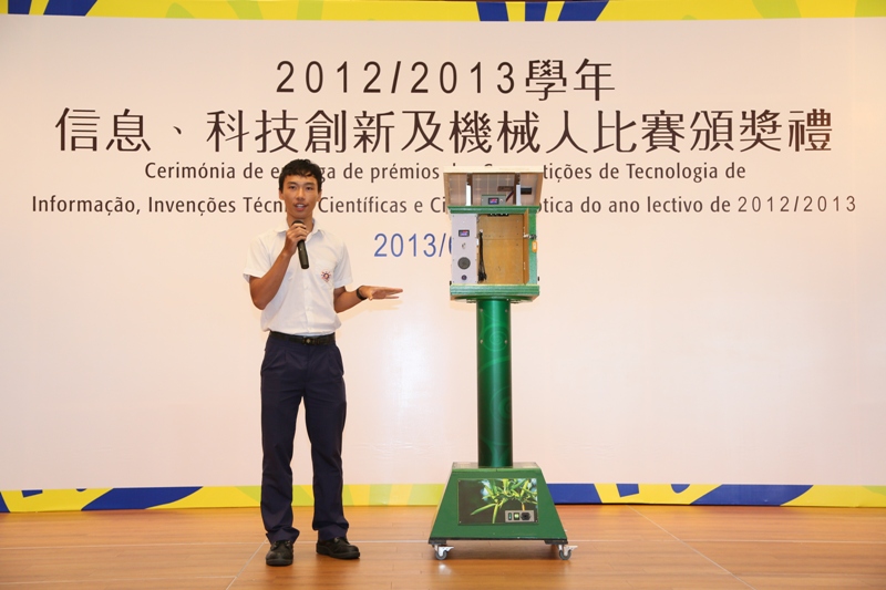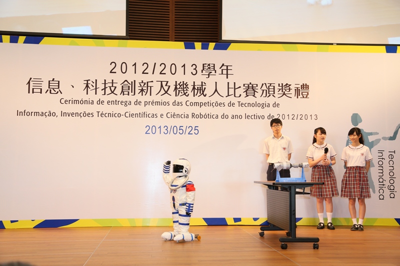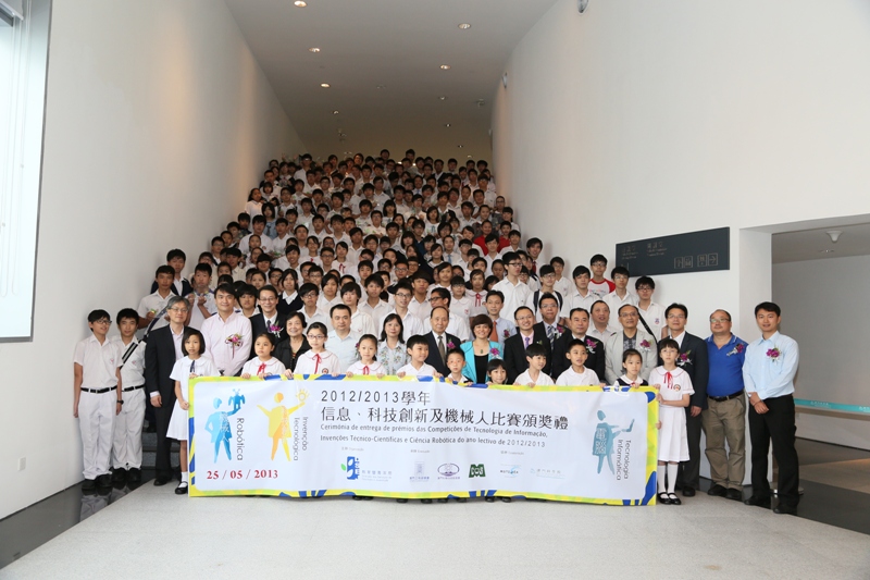 A “Cerimónia de entrega de prémios das Competições de Tecnologia de Informação, Invenções Técnico-Científicas e Ciência Robótica do ano lectivo de 2012/2013”, organizada pela Direcção dos Serviços de Educação e Juventude, realizou-se, com sucesso no dia 25 de Maio, no Centro de Convenções do Centro de Ciência de Macau. A DSEJ, seleccionou, através da “11.a Edição Nacional sobre Invenção da Tecnologia Informática e Prática nos Ensinos Primário e Secundário – Selecção de Macau”, “Selecção dos Trabalhos de Invenção Tecnológica dos Jovens de Macau 2013”, “Competição para a Selecção de Jovens de Macau para a Actividade de Ciência Robótica Integrada 2013” e “Competição Internacional de Ciência e Engenharia 2012 - Selecção de Macau”, as equipas excelentes para em nome de Macau participarem no “28.º Concurso Nacional de Invenções Técnico-Científicas para Jovens da China” e na actividade “12.º Concurso de Pequenos Cientistas do Futuro”, ao mesmo tempo, que organizará equipas para participarem em oito (8) concursos internacionais, nacionais e regionais.
