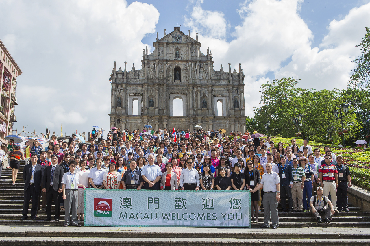 A directora da Direcção dos Serviços de Turismo (DST), Maria Helena de Senna Fernandes, e os subdirectores, Manuel Pires e Cecília Tse, reuniram-se hoje de manhã (19 de Junho) com a delegação e tiraram uma fotografia de grupo em frente às Ruínas de S. Paulo.