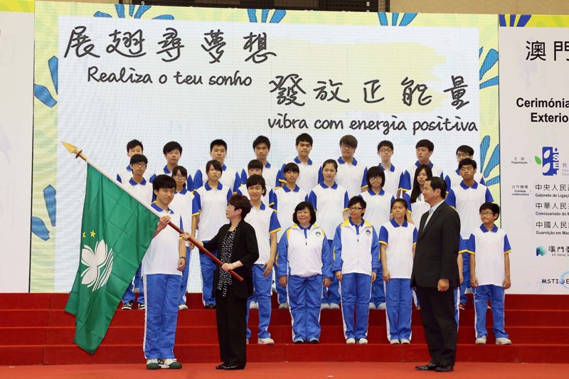 A cerimónia contou com a presença do secretário para os Assuntos Sociais e Cultura, Cheong U, do chefe do Departamento de Cultura e Educação do Gabinete de Ligação do Governo Popular Central da República Popular da China na RAEM, Liu Xiaohang, do subdirector do Departamento de Política da Guarnição em Macau do Exército de Libertação do Povo Chinês, coronel superior Deng Shengli, da directora dos Serviços de Educação e Juventude, Leong Lai, do presidente substituto do Instituto do Desporto, José Tavares, da chefe do Departamento de Diplomacia Pública e Informação do Comissariado do Ministério dos Negócios Estrangeiros da República Popular da China na RAEM, Hou Yue, da vogal do Conselho de Administração da Fundação Macau, Zhong Yi Seabra de Mascarenhas, dos subdirectores da DSEJ, Lou Pak Sang e Kuok Sio Lai, dos vogais do Conselho de Educação para o Ensino Não Superior e do Conselho de Juventude, dos representantes das entidades colaboradoras, dos directores escolares e das várias delegações formadas por cerca de mil professores e estudantes. A directora Leong Lai incentivou, no seu discurso, os professores e os estudantes a adquirirem mais conhecimentos, acumularem experiências valiosas e elevarem a sua capacidade competitiva durante a participação nas diferentes actividades no exterior, assim como aumentarem a comunicação e o intercâmbio com os professores e estudantes de diferentes locais para, assim, estabelecerem uma rede interpessoal a nível internacional. Liderados pela directora Leong Lai, os professores e estudantes representantes das várias delegações receberam das mãos do secretário Cheong U a bandeira da RAEM, simbolizando a eficaz preparação de todos os que, em representação da RAEM, se deslocam a diferentes locais para intercâmbio e aprendizagem, divulgando as energias positivas dos professores e estudantes de Macau. A DSEJ realizou esta cerimónia de lançamento sob o lema “realiza o teu sonho, vibra com energia positiva”, esperando que professores e estudantes de Macau consigam aproveitar estas actividades de Verão no exterior para desenvolverem as suas potencialidades, alargar a visão a nível internacional, enriquecer as experiências de vida e divulgar a energia positiva aos outros. Cerca de mil professores e estudantes irão participar em concursos de generalização de ciências e de outras disciplinas, cursos de aprendizagem de línguas, acampamentos de Verão, actividades de intercâmbio, acções de formação para professores, entre outras actividades a realizar pela DSEJ em conjunto com várias entidades, a saber: Gabinete de Ligação do Governo Popular Central da República Popular da China na RAEM, Comissariado do Ministério dos Negócios Estrangeiros da República Popular da China na RAEM, Guarnição em Macau do Exército de Libertação do Povo Chinês, Fundação Macau, Universidade de Macau, Centro de Ciência de Macau, S.A., Federação das Associações dos Operários de Macau, Associação Promotora das Ciências e Tecnologias de Macau, Rede de Serviços Juvenis Bosco, Macau Science and Technology Innovation Education Association, Associação dos Engenheiros de Macau, Associação de Academia da Informática de Macau, Teatro de Lavradores, Youth Dreams Association, etc.