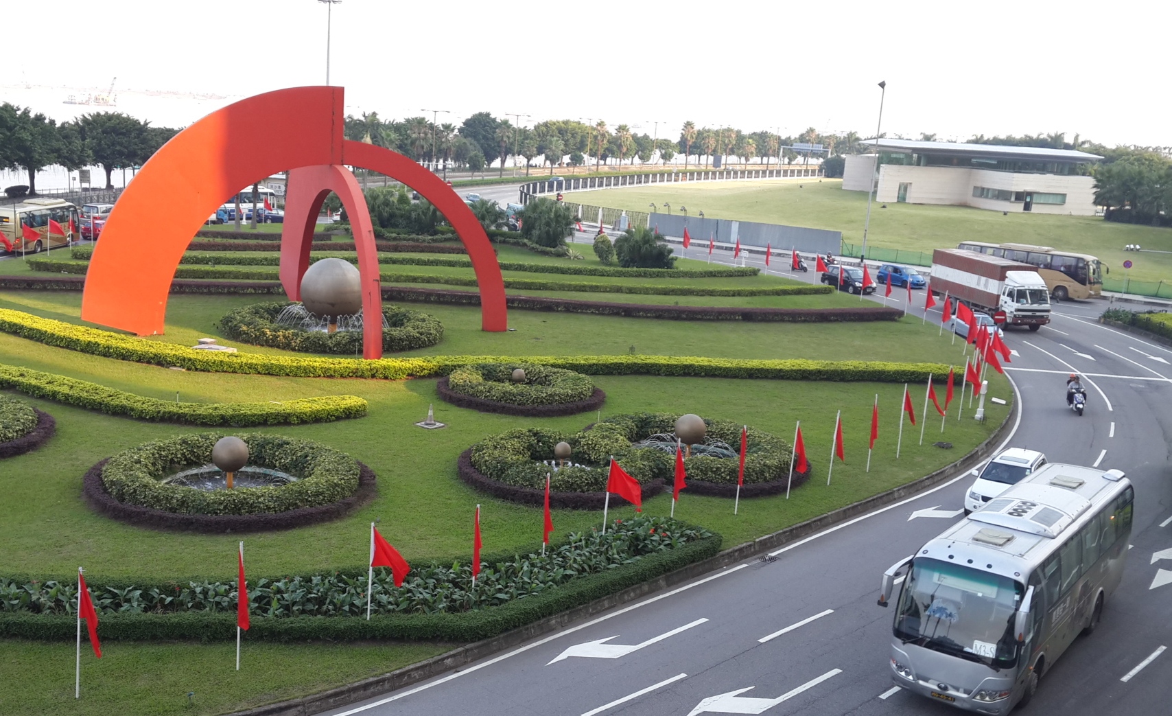 Perante isto, a DSAT tenciona a optimizar, de forma programada, a disposição das intersecções da Rotunda da Amizade, Avenida da Ponte da Amizade, Avenida do Nordeste e Avenida de 1.º de Maio, a partir de meados de Outubro. Os trabalhos compreendem: alteração do sentido de circulação da Rua de Má Káu Séak entre a Rua Nova da Areia Preta e a Avenida de 1.º de Maio, i.e. em vez de duas faixas de rodagem para dois sentidos de circulação, passa a duas faixas de rodagem para um sentido de circulação, podendo os veículos apenas dirigir-se para a Avenida de 1.º de Maio a partir da Rua Nova da Areia Preta, com vista a simplificar o funcionamento do trânsito da respectiva intersecção; ajustamento do tempo de ciclo dos semáforos das intersecções entre a Rua de Má Káu Séak e a Avenida de 1.º de Maio, e entre a Avenida do Nordeste e a Avenida de 1.º de Maio; e a abertura de uma faixa de rodagem para viragem à esquerda na Rotunda da Avenida separada com semáforo e balizas flexíveis, permitindo aos veículos entrar directamente pela esquerda na Avenida do Nordeste, a partir da Avenida da Ponte da Amizade. A conclusão dos referidos trabalhos está prevista para antes da realização do Grande Prémio, ou seja, entre meados e finais de Novembro.