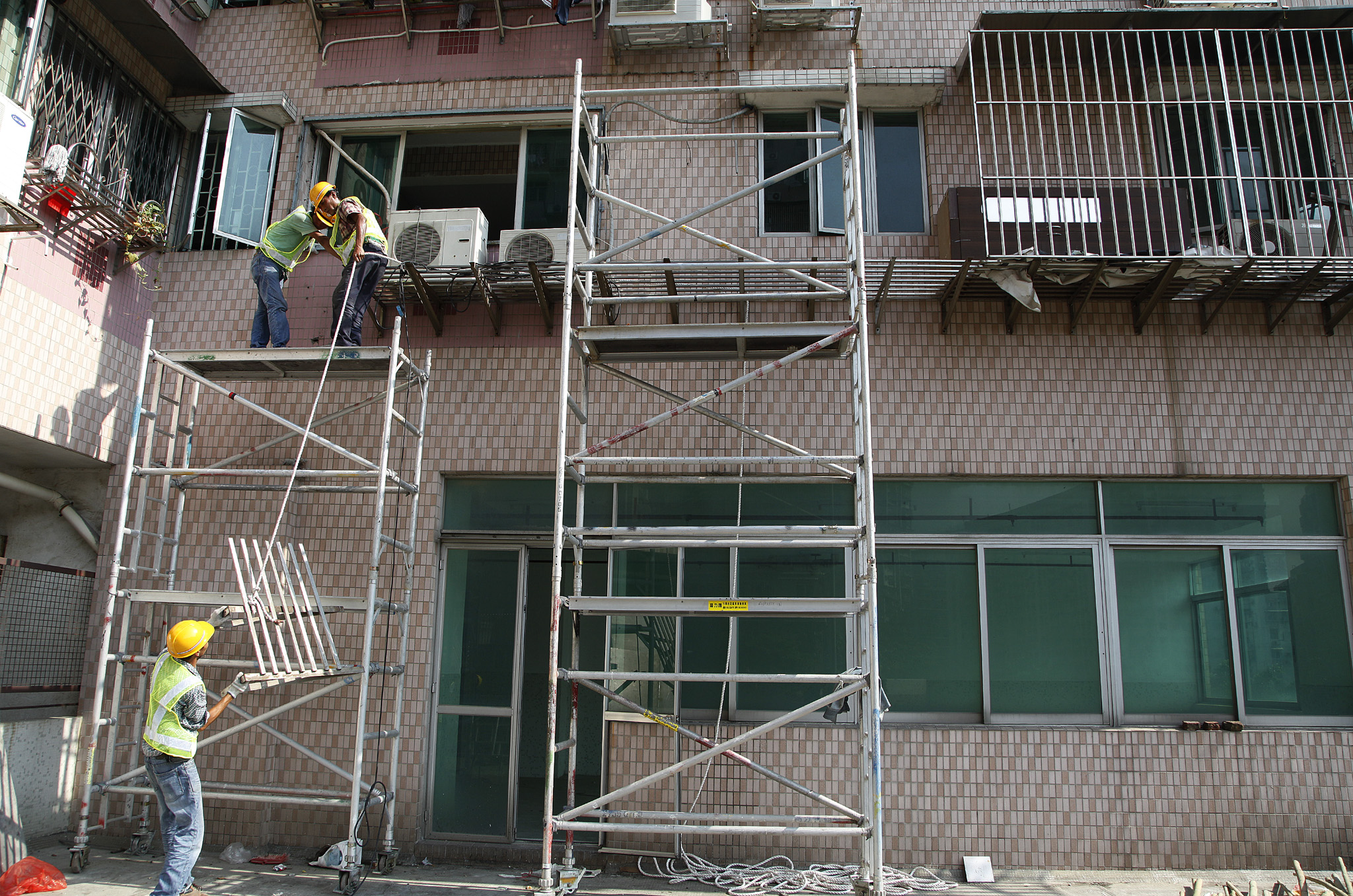 Tendo em conta a presente acção trata as construções clandestinas na parede exterior, por isso, deve construir andaimes e suspensas para chegar as respectivas construções clandestinas, de modo a permitir a realização das obras de demolição, em particular, o pátio só tem uma área de 3m2, os trabalhadores devem construir os andaimes a partir do terraço para chegar o baixo para realizar as respectivas obras. Devido à complexidade dos trabalhos e com um considerável orçamento, mas isto não impede os trabalhos da Administração e após a conclusão de demolição, será ainda exigido ao seu infractor o pagamento das despesas das respectivas obras.