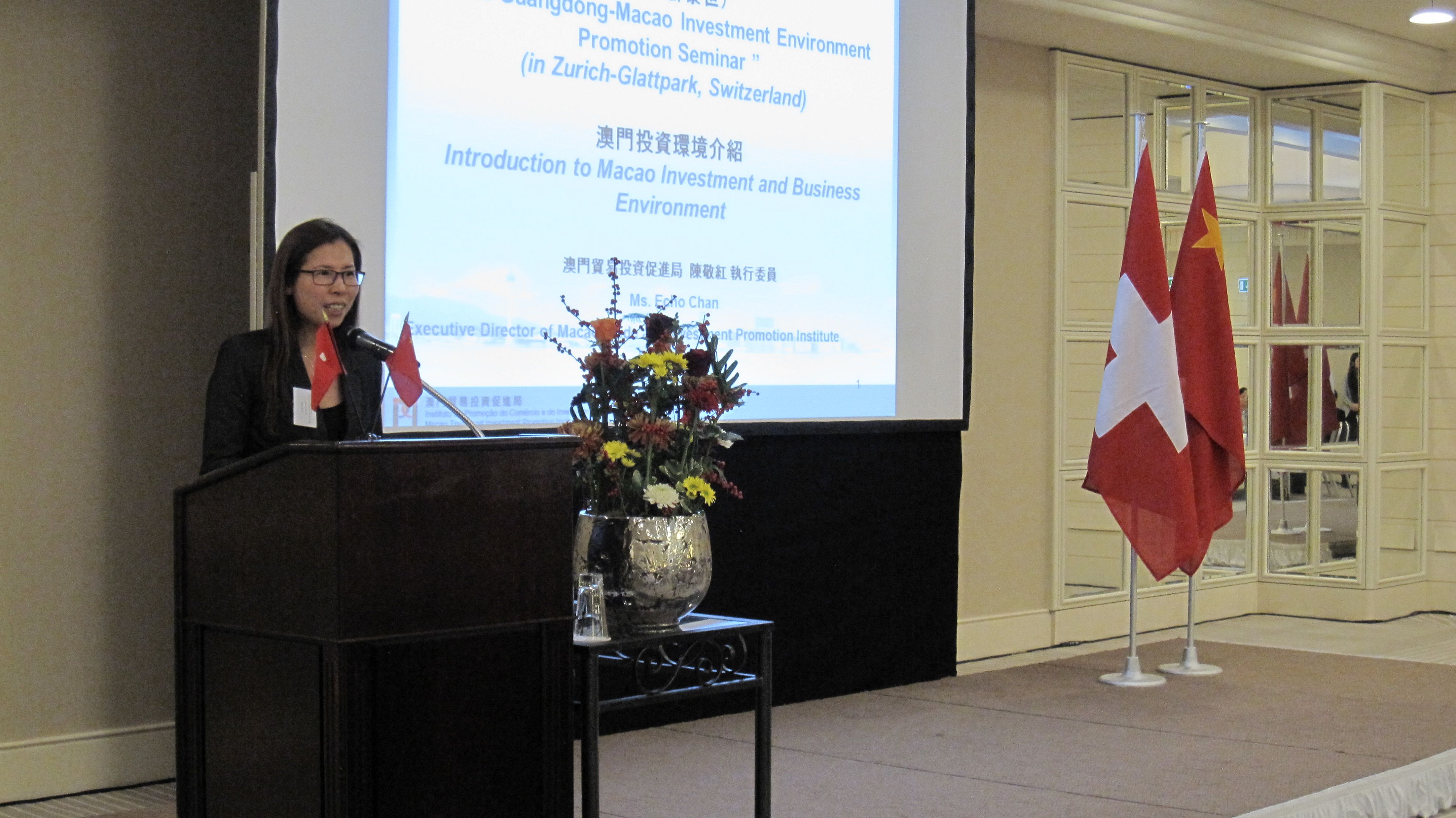 A Vogal Executiva do IPIM, Dra. Echo Chan, salientou, no seu discurso proferido no Seminário de Promoção na Suíça, que Macau e a Suíça têm mantido estreitas relações de cooperação económica e comercial ao longo de muitos anos. Nos primeiros três trimestres de 2013, as trocas comerciais entre os dois territórios atingiram cerca de 610 milhões de dólares americanos, correspondentes ao acréscimo de 21% em relação ao período homólogo do ano passado; as importações da Suíça para Macau incluíram, principalmente, relógios, jóias, produtos de cuidados da pele e produtos farmacêuticos. No mês de Julho deste ano, foi celebrado o “China – Switzerland Free Trade Agreement”, com a Suíca a figurar como o primeiro País Europeu que formalizou um acordo de comércio livre com a China. Foi também assinado, em 2005, o acordo de aviação bilateral entre Macau e a Suíca, de modo a reforçar o intercâmbio bilateral nas diversas áreas, nomeadamente economia e comércio, turismo e transporte aéreo.