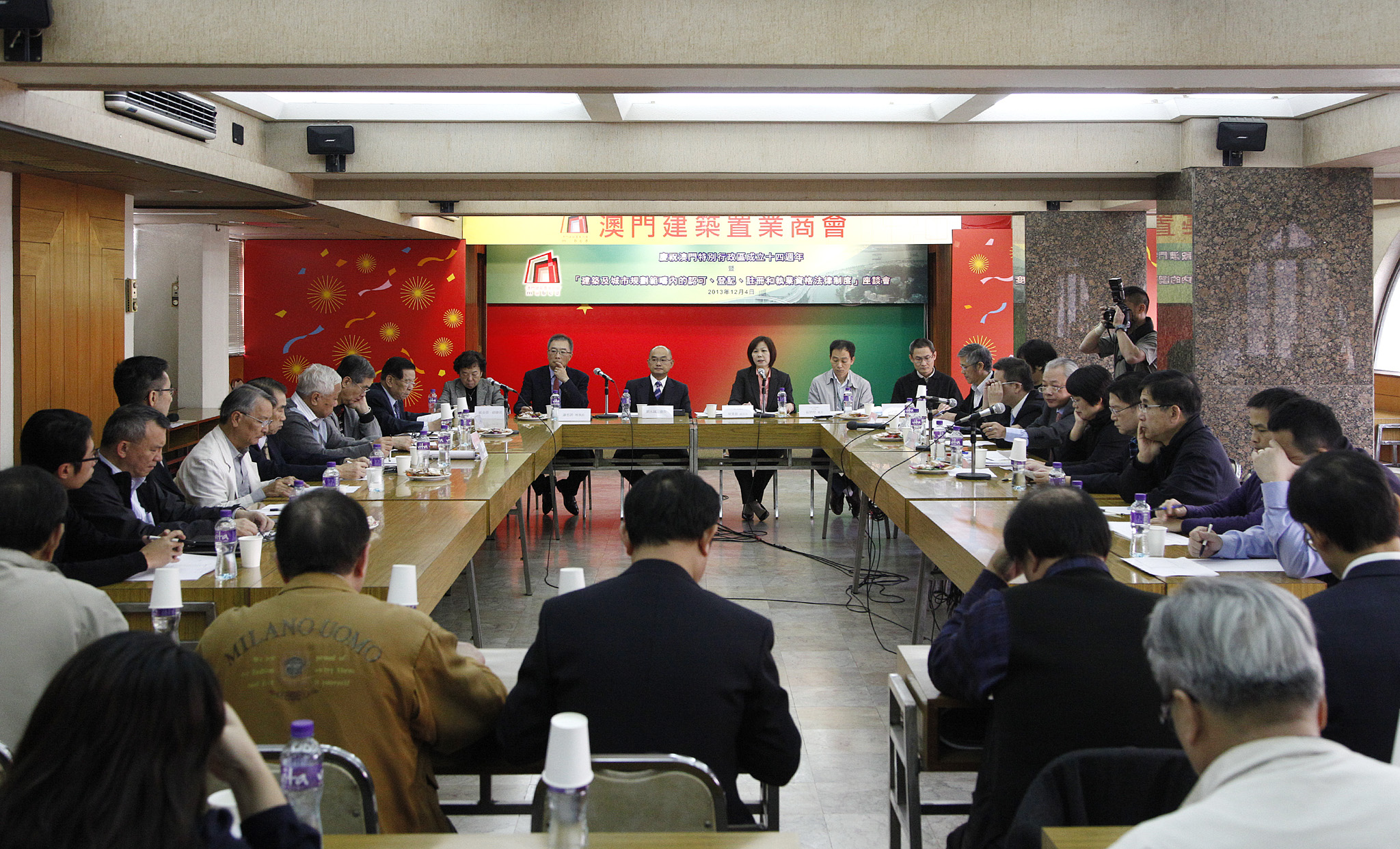 Por ocasião do 14.º aniversário do estabelecimento da RAEM e do seminário de apresentação do Regime Jurídico de Acreditação, Registo, Inscrição e Qualificação para o Exercício de Funções Profissionais nos Domínios da Construção Civil e do Urbanismo, presidido pelo presidente da associação, Lao Weng Seng, e pelo presidente da direcção, Che Si Fan, e que contou também com a presença de cerca de 30 membros da direcção e do conselho fiscal da associação, que teve lugar no passado dia 4 de Dezembro, na sede da Associação de Construtores Civis e Empresas de Fomento Predial de Macau, os representantes da DSSOPT foram convidados para esclarecer em pormenor e debater com o sector da construção as disposições relativas a criação do Conselho de Arquitectura e Engenharia, a sua redacção e os aspectos que mereceram a sua acrescida atenção.