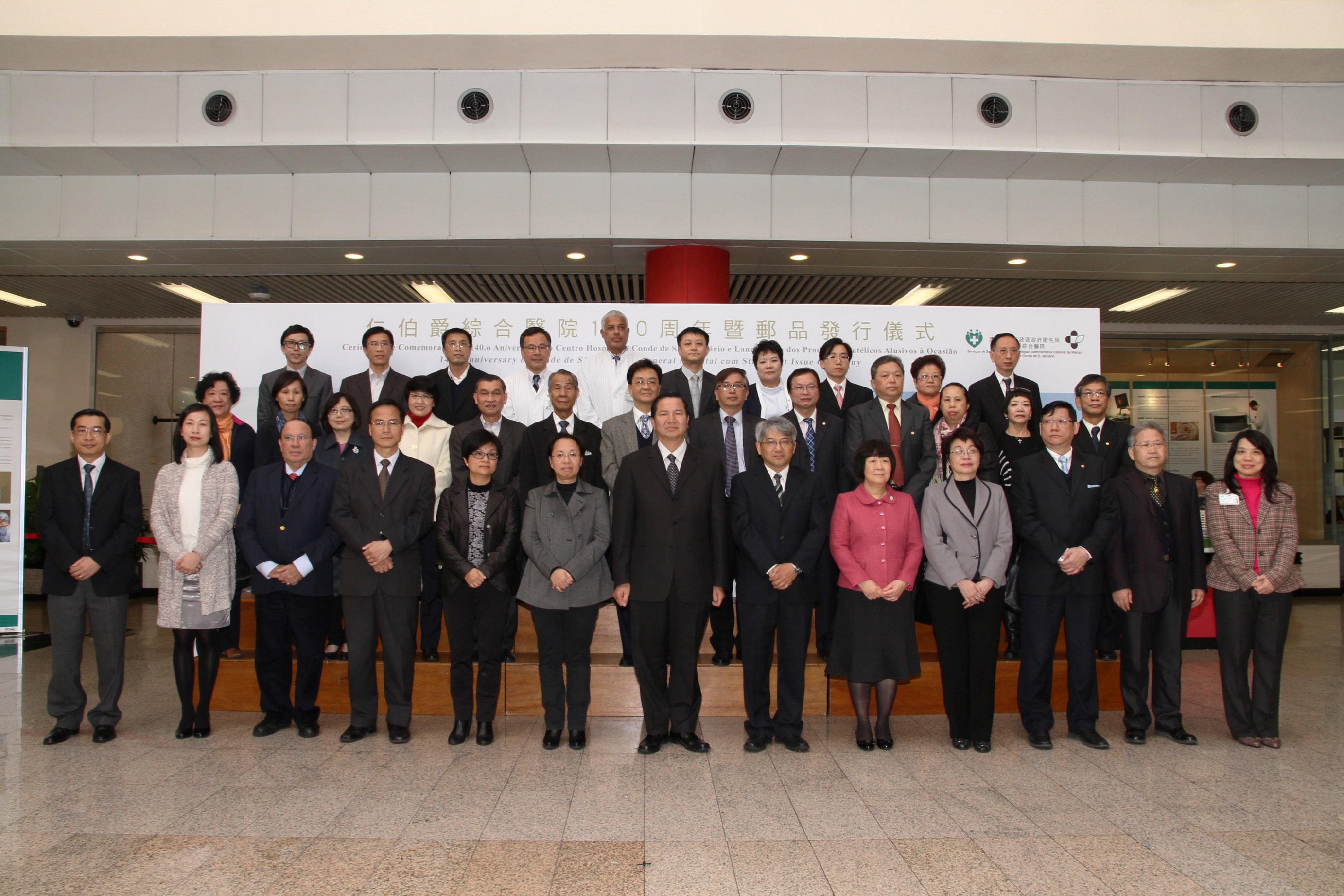 O Centro Hospitalar Conde de São Januário realizou hoje (dia 6 de Janeiro) a cerimónia de comemoração do 140.o aniversário do Centro Hospitalar Conde de São Januário e lançamento dos produtos filatélicos alusivos à ocasião. A cerimónia de iluminação foi presidida pelo Secretário para os Assuntos Sociais de Cultura, Dr. Cheong U, Chefe do Gabinete de Secretário para os Assuntos Sociais de Cultura, subst.a, Dr.a Maria Leong Madalena, Director dos Serviços de Saúde, Dr. Lei Chin Ion, Directora da Direcção dos Serviços de Correios, Dr.a Lau Wai Meng e o Director do Centro Hospitalar Conde de São Januário, Dr. Chan Wai Sin. O Dr. Lei Chin Ion e a Dr.a Lao Wai Meng ofereceram os produtos filatélicos alusivos à comemoração do 140.o aniversário do Centro Hospitalar Conde de São Januário. O Secretário para os Assuntos Sociais de Cultura, Dr. Cheong U, também ouviu a apresentação a respeito dos resultados das acções médicas com sucesso efectuadas pelo Centro Hospitalar Conde de São Januário nos últimos anos.