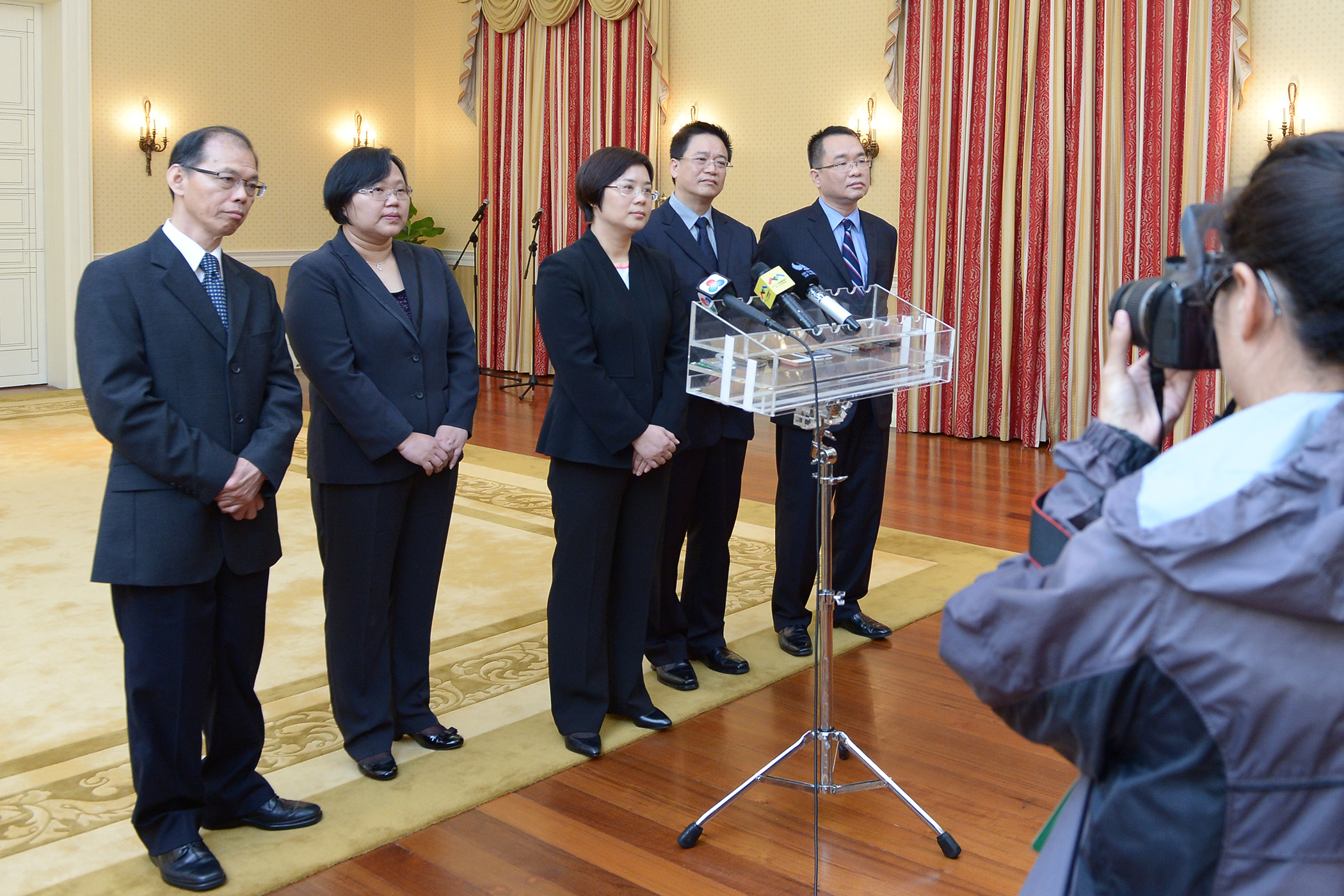 Foram nomeados os membros para a Comissão através do Despacho do Chefe do Executivo n.º 60/2014, publicado, hoje, no Boletim Oficial da Região Administrativa Especial de Macau. O Chefe do Executivo, Chui Sai On, presidiu, esta manhã, na Sede do Governo, à cerimónia de tomada de posse dos cinco membros da Comissão de Assuntos Eleitorais do Chefe do Executivo, designadamente a juíza do Tribunal de Última Instância, Song Man Lei (presidente da Comissão), a procuradora-adjunta do Ministério Público, Ma Iek, o presidente do Tribunal Judicial de Base e do Tribunal Administrativo, Ip Son Sang, o director dos Serviços de Administração e Função Pública, José Chu e o director do Gabinete de Comunicação Social, Victor Chan.