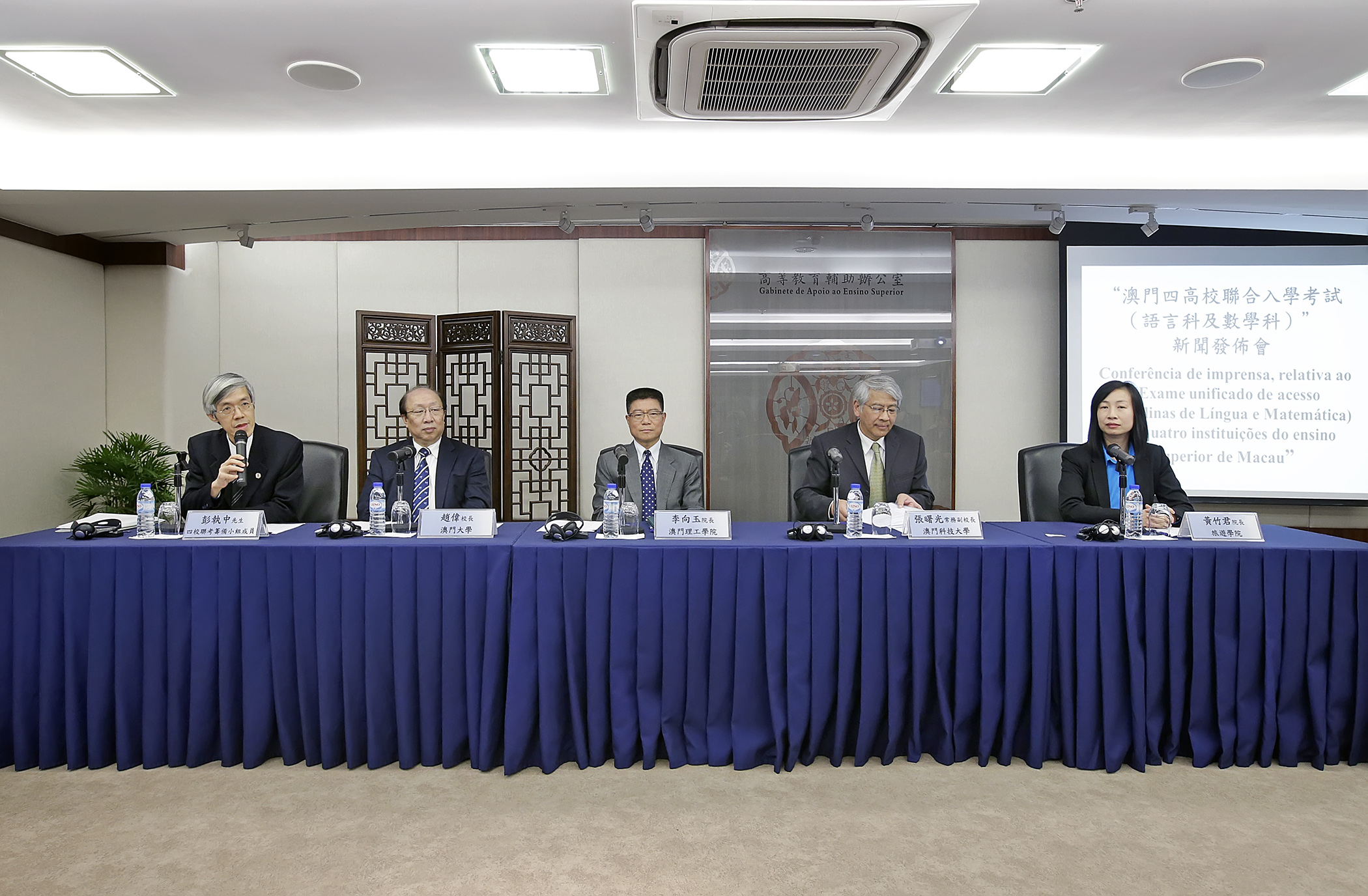 Hoje, dia 15 de Abril, realizou-se a conferência de imprensa, sobre o exame unificado de acesso (disciplinas de Língua e Matemática) das quatro instituições do ensino superior de Macau, adiante designado por Exame Unificado de Acesso, organizada pelo Grupo de Coordenação, formado pelas seguintes instituições do ensino superior de Macau: Universidade de Macau, Instituto Politécnico de Macau, Instituto de Formação Turística e Universidade de Ciência e Tecnologia de Macau. O Grupo referiu que, após a consulta mais alargada de opiniões, pretende implementar, em 2017, o respectivo exame, para permitir que as escolas e os estudantes tenham mais tempo para adaptação e preparação. Aliás, o mesmo Grupo frisou que, o acesso não tem distribuição centralizada, nem uma classificação mínima definida para a admissão, não se procedendo, por isso, à divulgação pública das classificações individuais dos candidatos.