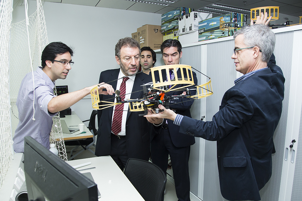 O Prof. Nuno Crato também visitou os laboratórios da Faculdade de Ciências e Tecnologia no novo campus, em particular o Laboratório de Robótica, para se inteirar do desenvolvimento da investigação científica da instituição.