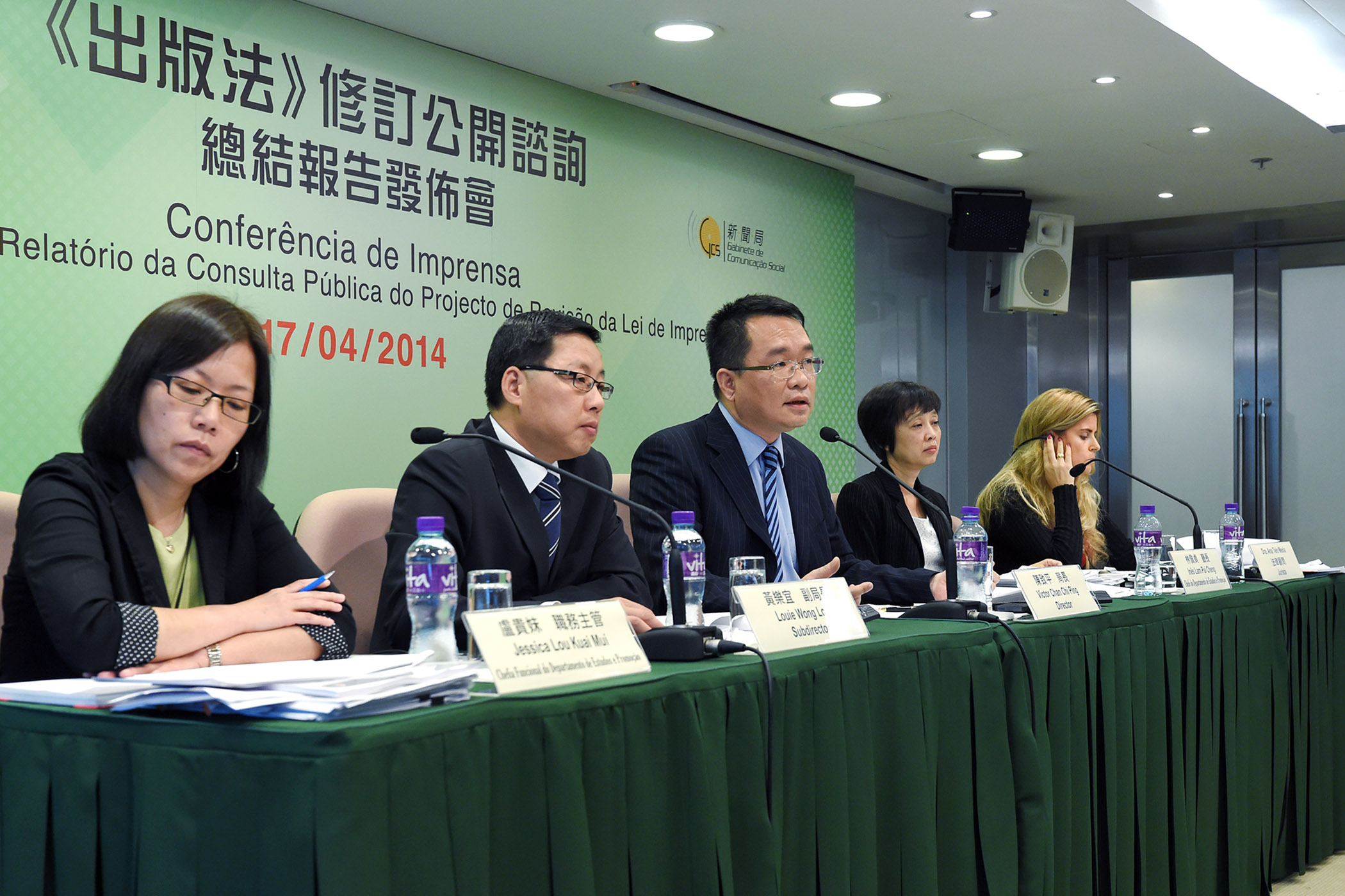O director do GCS, Victor Chan, referiu hoje (17 de Abril) em conferência de imprensa, que o GCS analisou e elaborou o relatório sobre a consulta pública relativa à revisão da Lei de Imprensa, nos termos do Despacho do Chefe do Executivo n.º 224/2011 (Normas para a Consulta de Políticas Públicas).