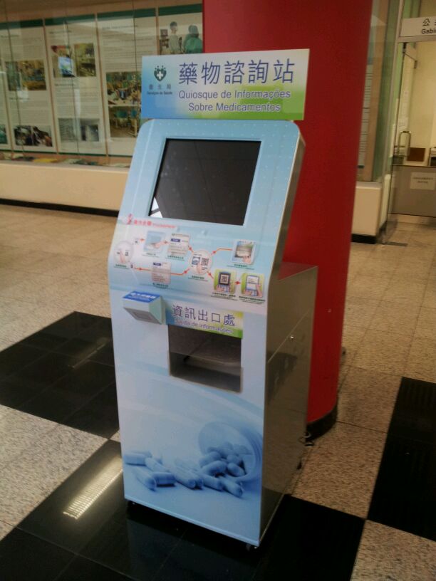Com vista a aumentar os conhecimentos dos cidadãos sobre o uso de medicamentos, o Átrio do Centro Hospitalar Conde de São Januário (adiante designado por CHCSJ) passa a estar equipado a partir da presente data, de um Quiosque de Informações Sobre Medicamentos com ecrã sensível ao toque. Os cidadãos podem inserir os nomes de medicamentos através do ecrã do Quiosque ou digitalizar os códigos de barras constantes da requisição de medicamentos passada pelo CHCSJ, de maneira a consultar as informações dos medicamentos inseridos no ecrã do Quiosque. Em simultâneo, no intuito de facilitar a leitura pormenorizada das respectivas informações pelos cidadãos, os mesmos podem imprimi-las através do Quiosque, ou digitalizar recorrendo aos seus telemóveis através do código QR (QR code) mostrado no ecrã para que as informações sejam transmitidas e lidas no telemóvel.