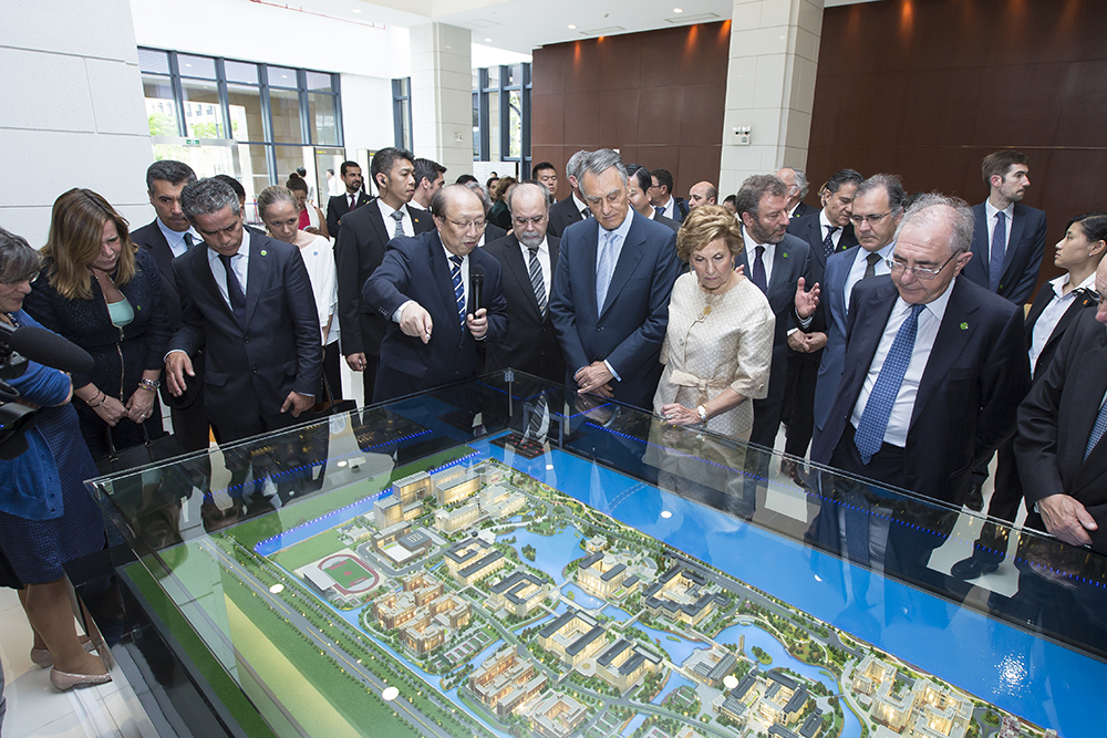 Com a presença de professores e alunos de língua portuguesa da UM, o Reitor da UM, Wei Zhao e o Vice-Reitor (Investigação Científica), Rui Martins reuniram-se com o Presidente Cavaco Silva no novo campus da UM e deram-lhe a conhecer o desenvolvimento recente da instituição e a cooperação com instituições de ensino superior portuguesas. O Reitor disse que o Presidente Cavaco Silva é o primeiro presidente de um país a visitar o novo campus da UM, e também é o único presidente que tem visitado tanto o antigo como o novo campus da instituição.