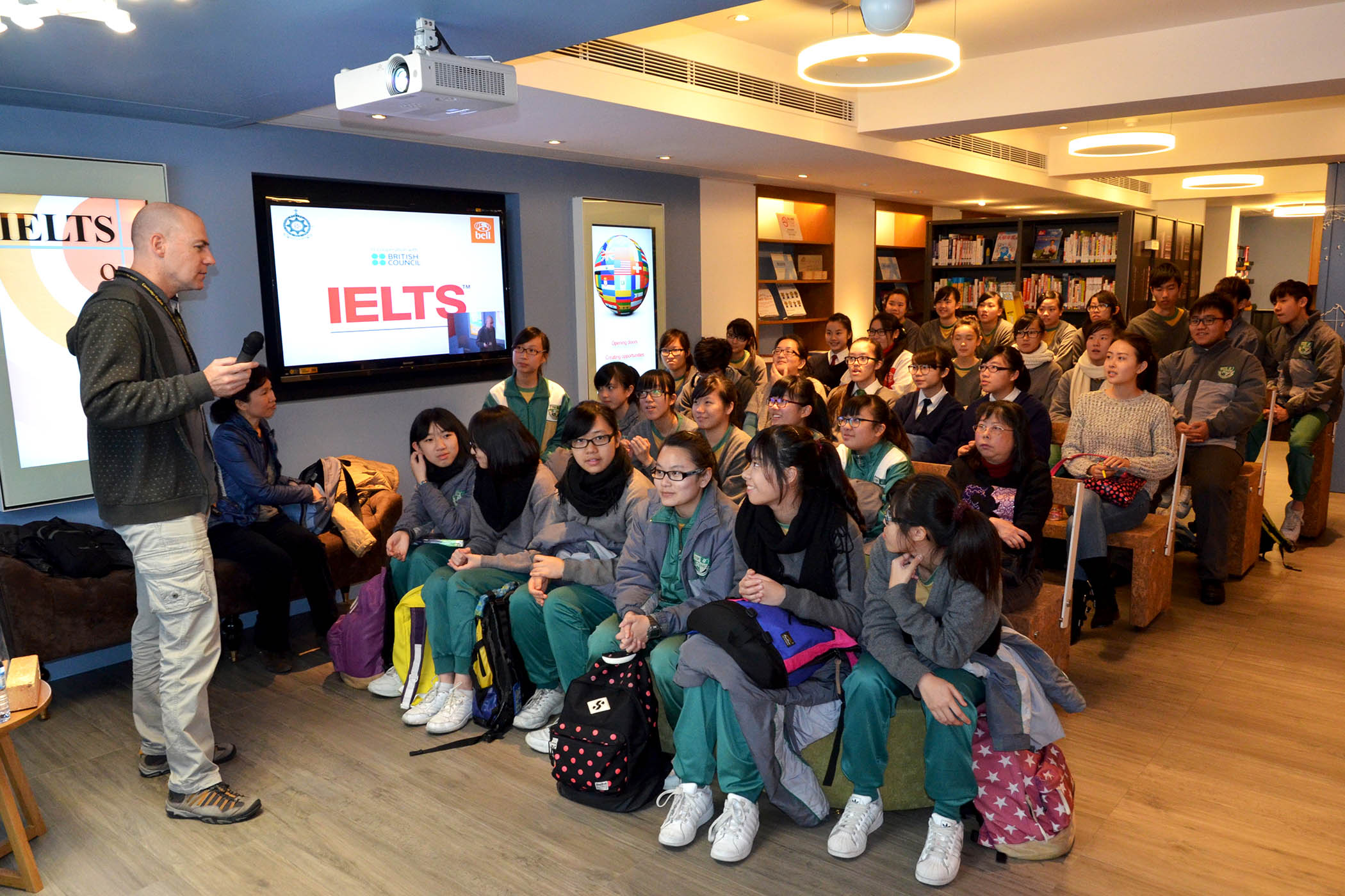 O GAES, realizou, entre Fevereiro e Maio deste ano, doze sessões de esclarecimento, com diversos temas respeitantes ao prosseguimento dos estudos e aos exames públicos do exterior, para introduzir as respectivas situações sobre o Interior da China, Portugal, Estados Unidos da América, Espanha, Austrália, Reino Unido, França, Alemanha e Canadá. Nestas sessões, foram oradores convidados os representantes das seguintes entidades: Ministério da Educação da República Popular da China, Consulado-Geral de Portugal em Macau e Hong Kong, Consulado-Geral de Espanha em Hong Kong, Consulado-Geral da Austrália em Hong Kong, Conselho Britânico em Hong Kong, Consulado-Geral da França em Hong Kong e Macau, Deutscher Akademischer Austauschdienst (Serviço Alemão de Intercâmbio Académico), Consulado-Geral do Canadá em Hong Kong e Education USA. Estes oradores apresentaram, detalhadamente, aos participantes, os seus sistemas educativos, os requisitos de acesso ao ensino, as propinas, as formalidades de candidatura às bolsas de mérito, bem como outras informações relacionadas. Para além disso, realizaram-se, ainda, outras sessões de esclarecimento sobre o TOEFL (Teste de Inglês como Língua Estrangeira), o IELTS (Sistema Internacional de Teste da Língua Inglesa) e o TOELC (Teste de Inglês para Comunicação Internacional), tendo sido, assim, estado presentes, os representantes do Centro de Língua Inglesa (Universidade de Macau), do Centro de Inglês IPM-Bell (Instituto Politécnico de Macau) e da Escola de Educação Contínua (Universidade da Cidade de Macau) para nos falarem sobre o reconhecimento, formas e observações relativas aos exames, entre outros aspectos.
